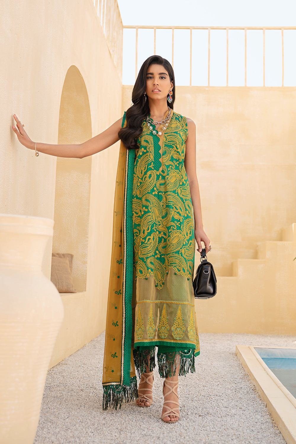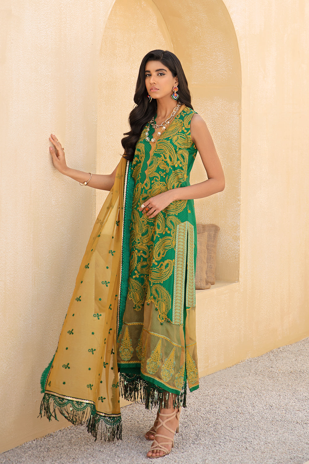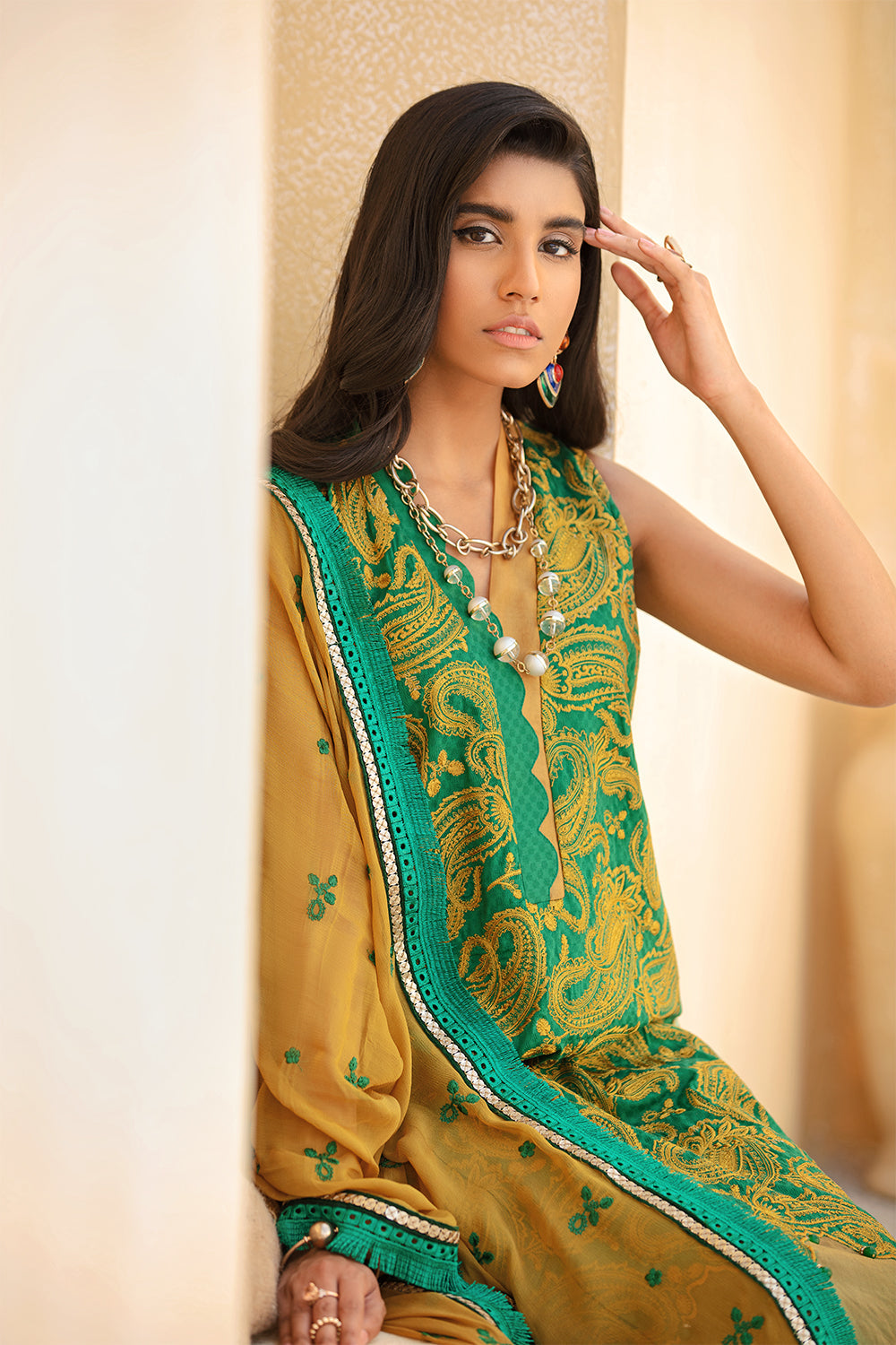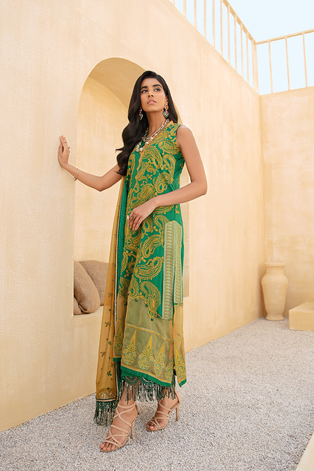 Stitched articles come with trousers tailored to match the unstitched trouser fabric provided. Please note that any appearance of shararas/ghararas in product images is for shoot purposes only unless otherwise specified in product details.