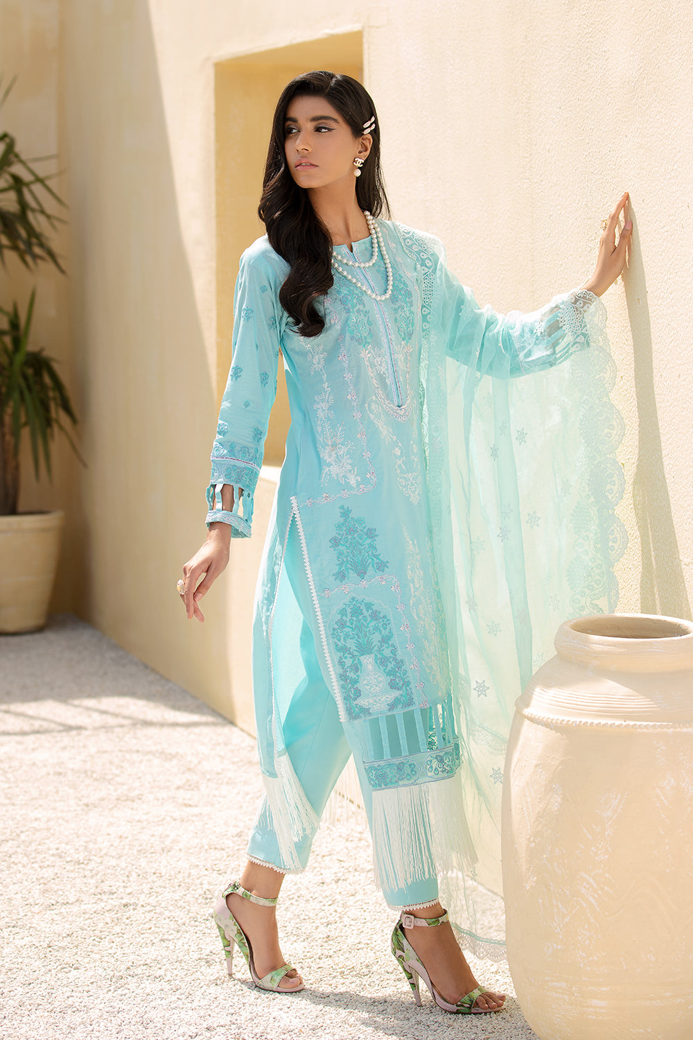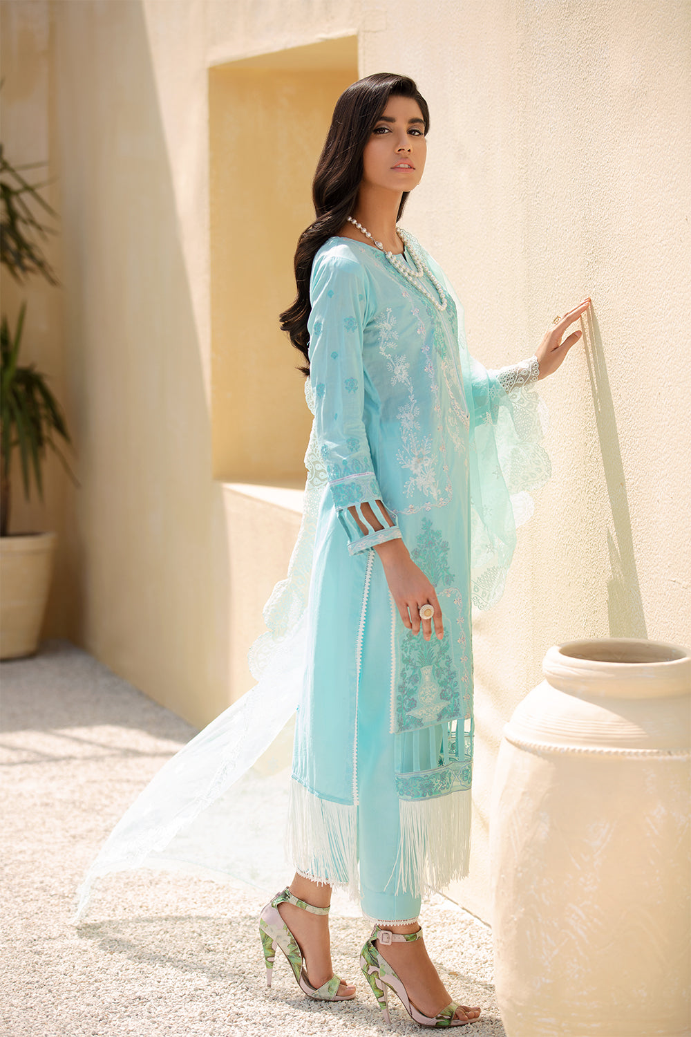 Stitched articles come with trousers tailored to match the unstitched trouser fabric provided. Please note that any appearance of shararas/ghararas in product images is for shoot purposes only unless otherwise specified in product details.