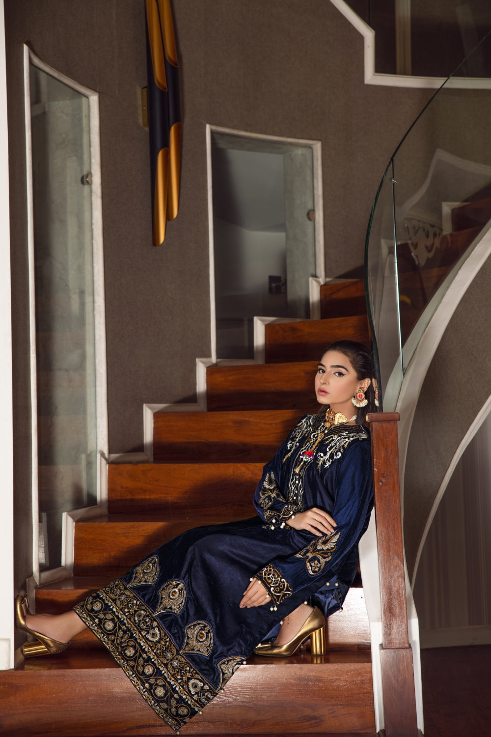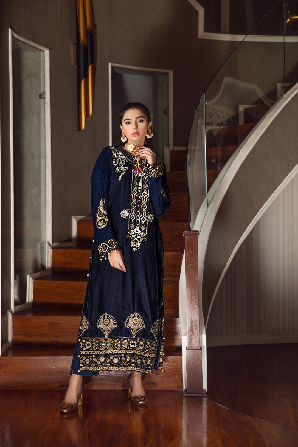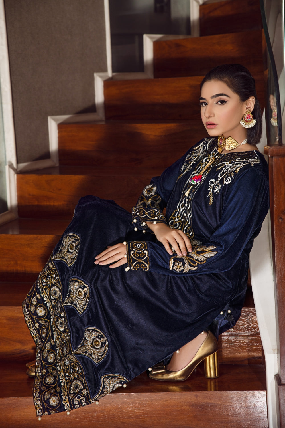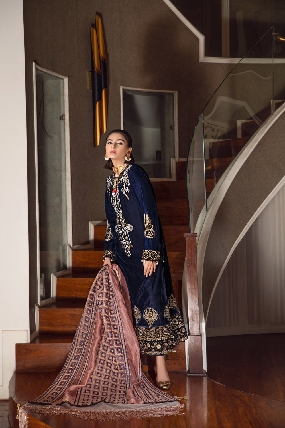 Velvet Embroidered 3Pc Withcopper Zari And Resham,