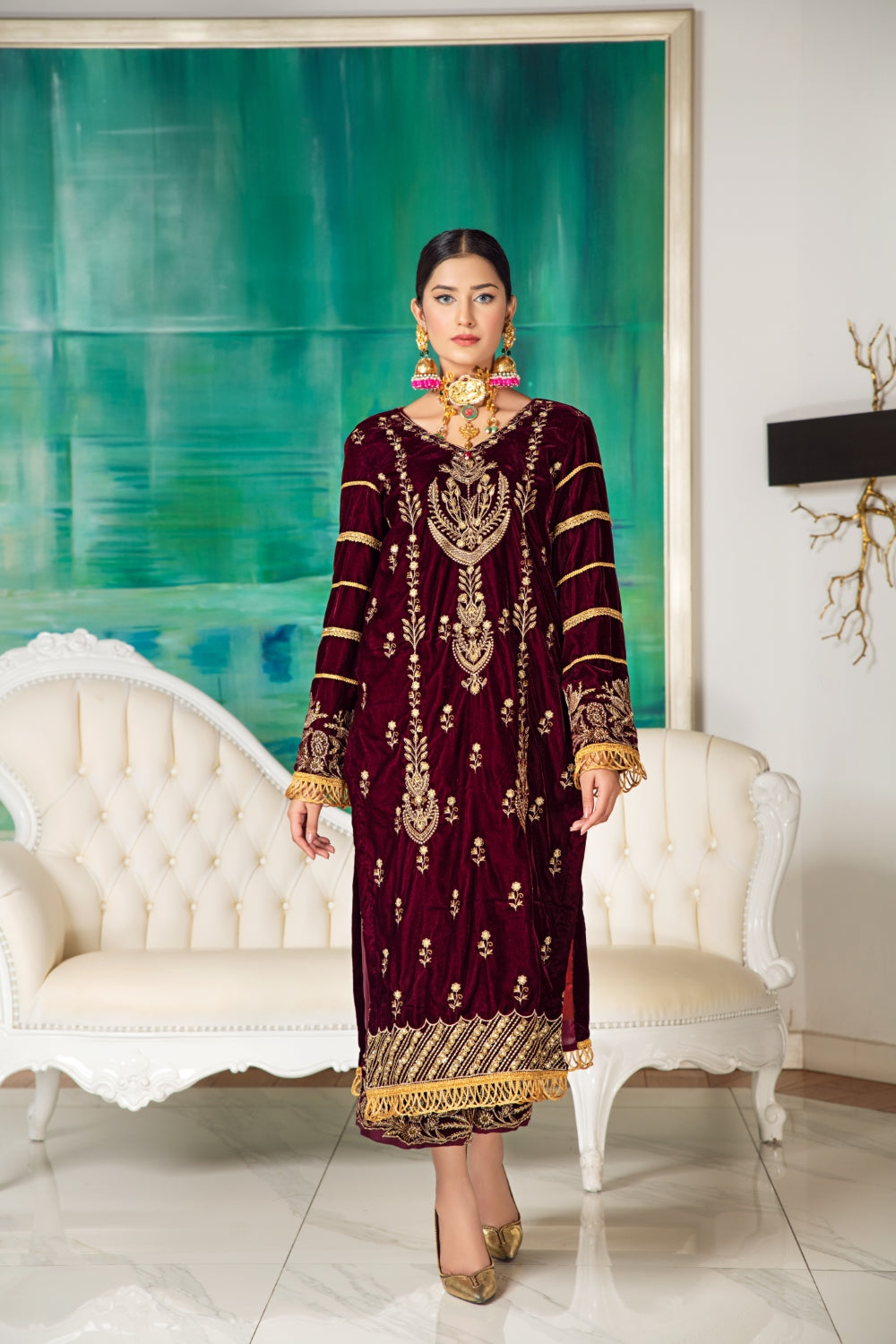 Stitched articles come with trousers tailored to match the unstitched trouser fabric provided. Please note that any appearance of shararas/ghararas in product images is for shoot purposes only unless otherwise specified in product details.