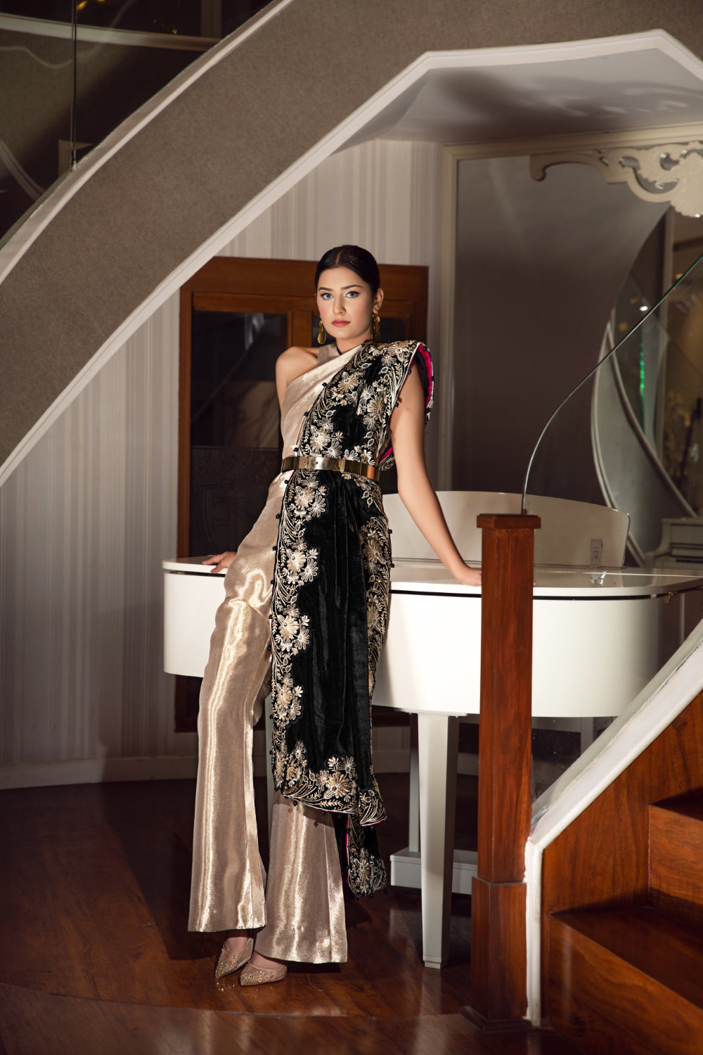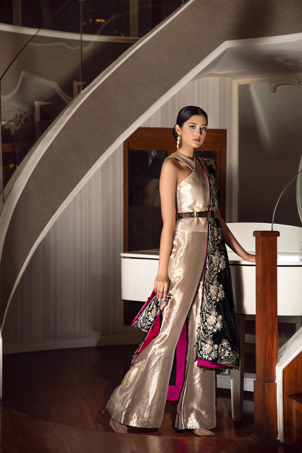 Stitched articles come with trousers tailored to match the unstitched trouser fabric provided. Please note that any appearance of shararas/ghararas in product images is for shoot purposes only unless otherwise specified in product details.