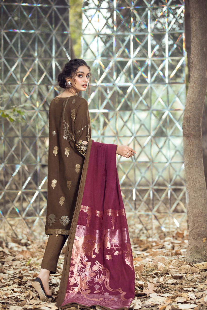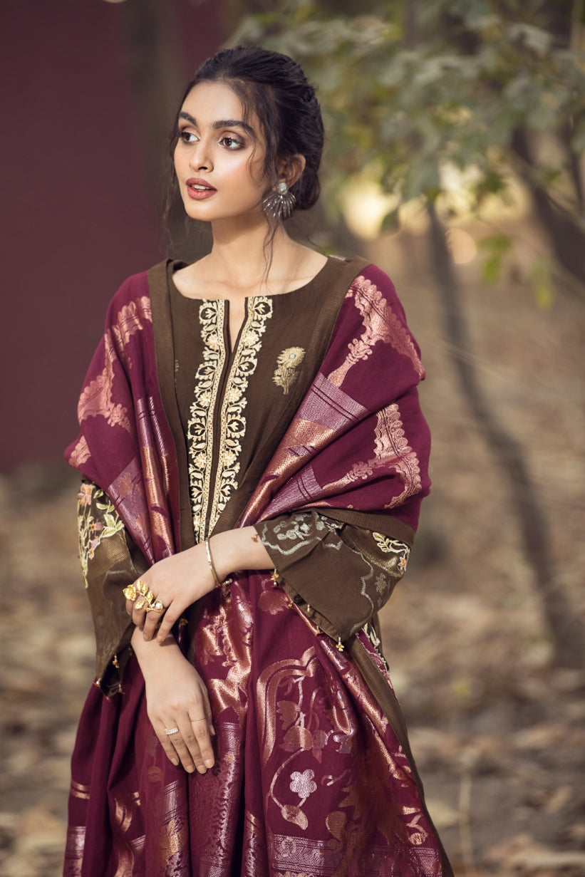 Stitched articles come with trousers tailored to match the unstitched trouser fabric provided. Please note that any appearance of shararas/ghararas in product images is for shoot purposes only unless otherwise specified in product details.
