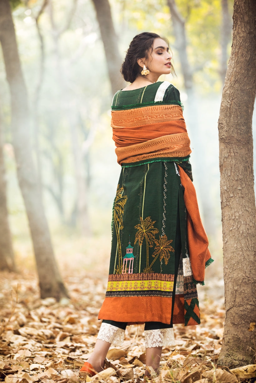 Stitched articles come with trousers tailored to match the unstitched trouser fabric provided. Please note that any appearance of shararas/ghararas in product images is for shoot purposes only unless otherwise specified in product details.