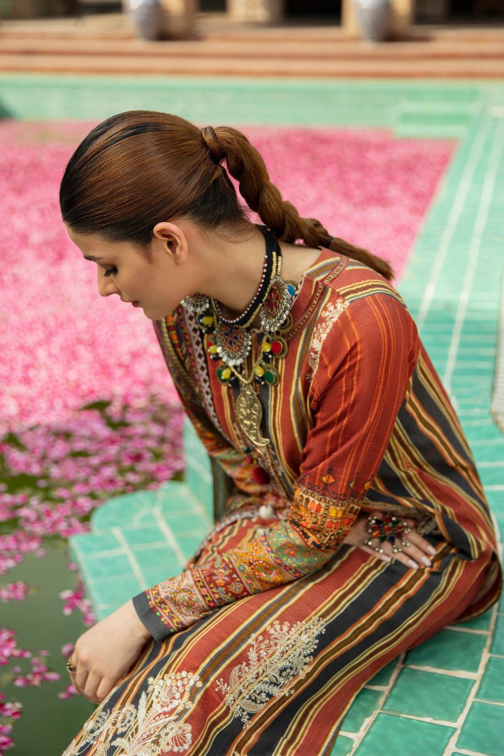 Stitched articles come with trousers tailored to match the unstitched trouser fabric provided. Please note that any appearance of shararas/ghararas in product images is for shoot purposes only unless otherwise specified in product details.