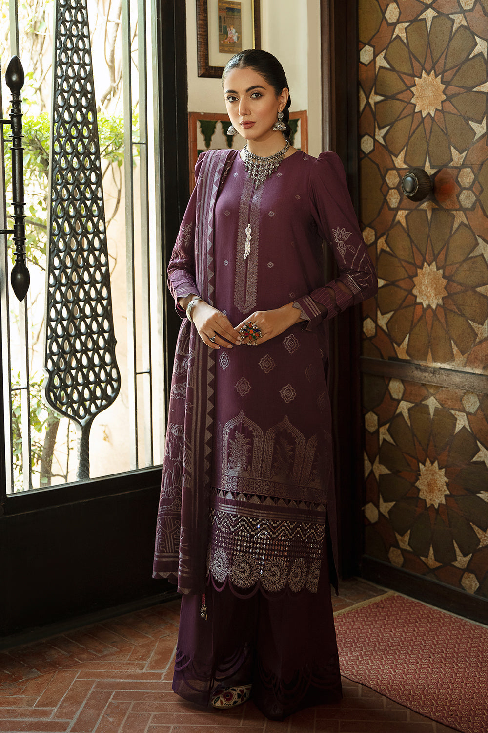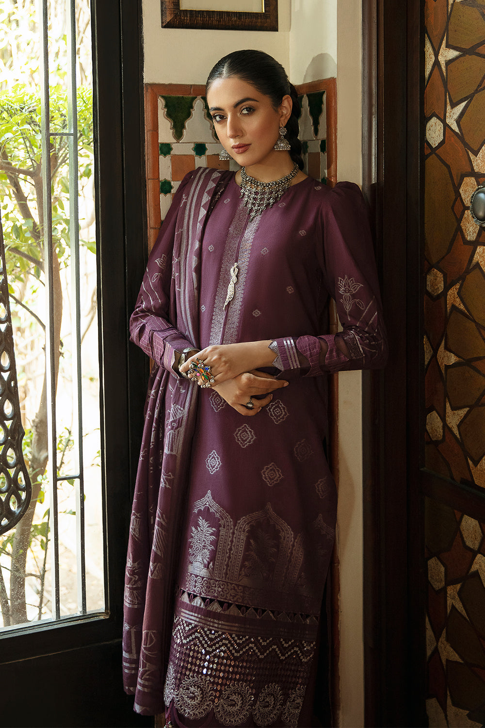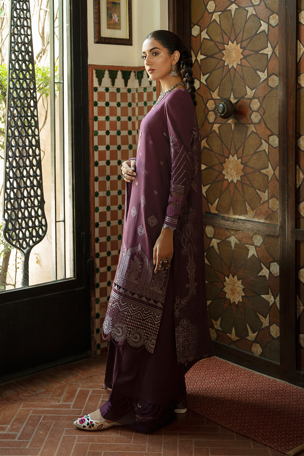 Stitched articles come with trousers tailored to match the unstitched trouser fabric provided. Please note that any appearance of shararas/ghararas in product images is for shoot purposes only unless otherwise specified in product details.