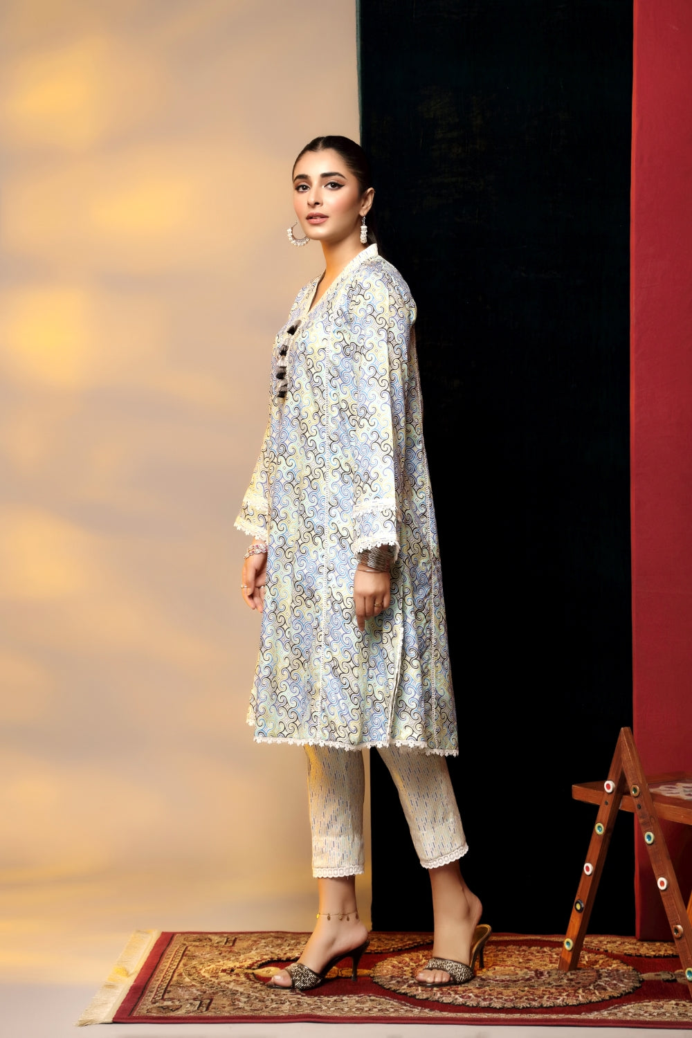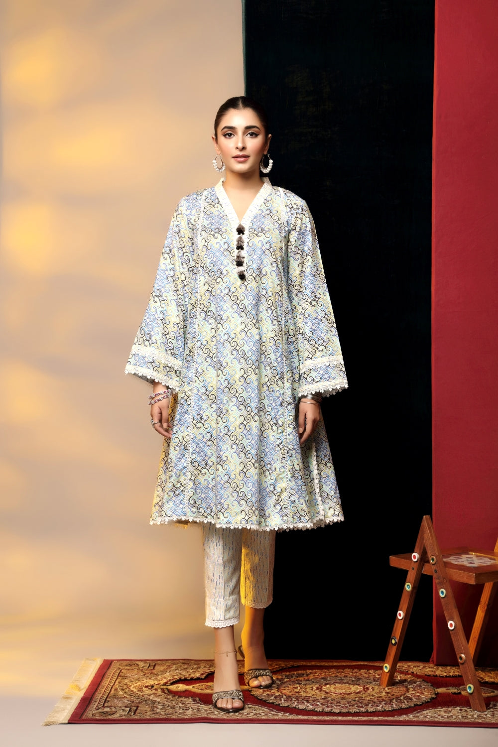 Stitched articles come with trousers tailored to match the unstitched trouser fabric provided. Please note that any appearance of shararas/ghararas in product images is for shoot purposes only unless otherwise specified in product details.