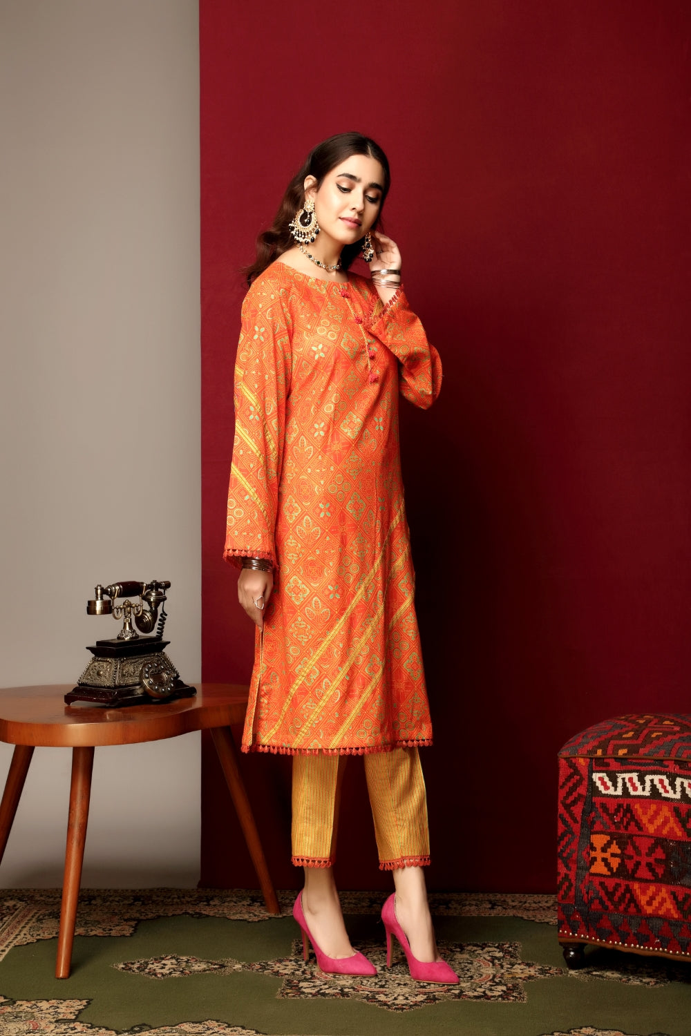 Stitched articles come with trousers tailored to match the unstitched trouser fabric provided. Please note that any appearance of shararas/ghararas in product images is for shoot purposes only unless otherwise specified in product details.