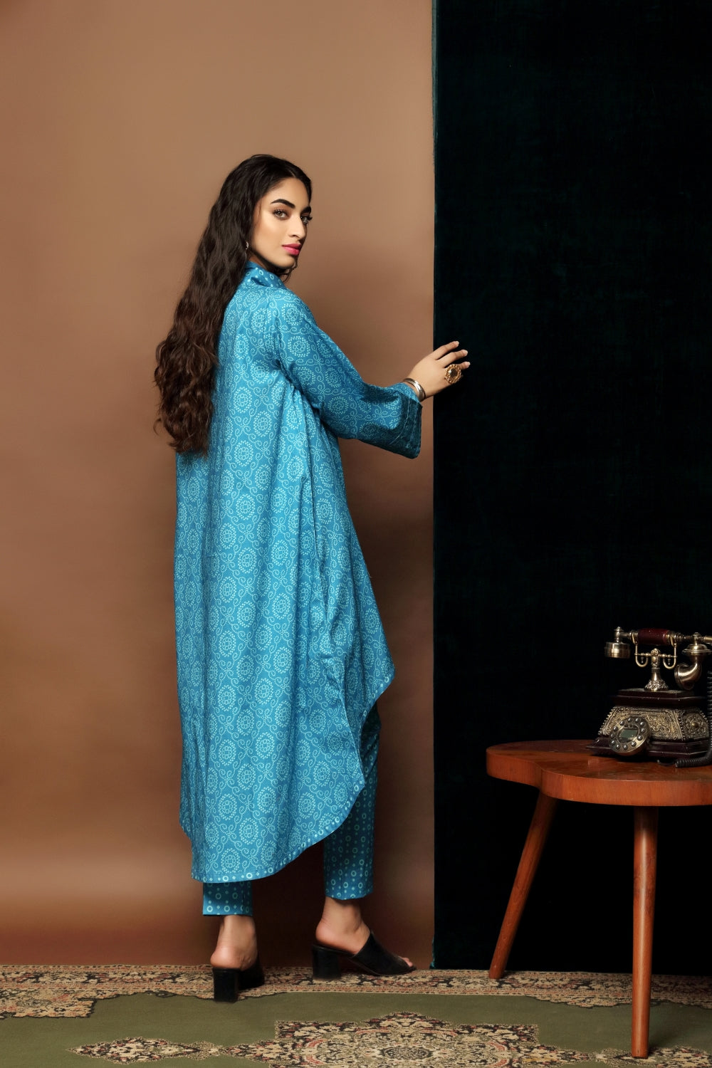 Stitched articles come with trousers tailored to match the unstitched trouser fabric provided. Please note that any appearance of shararas/ghararas in product images is for shoot purposes only unless otherwise specified in product details.