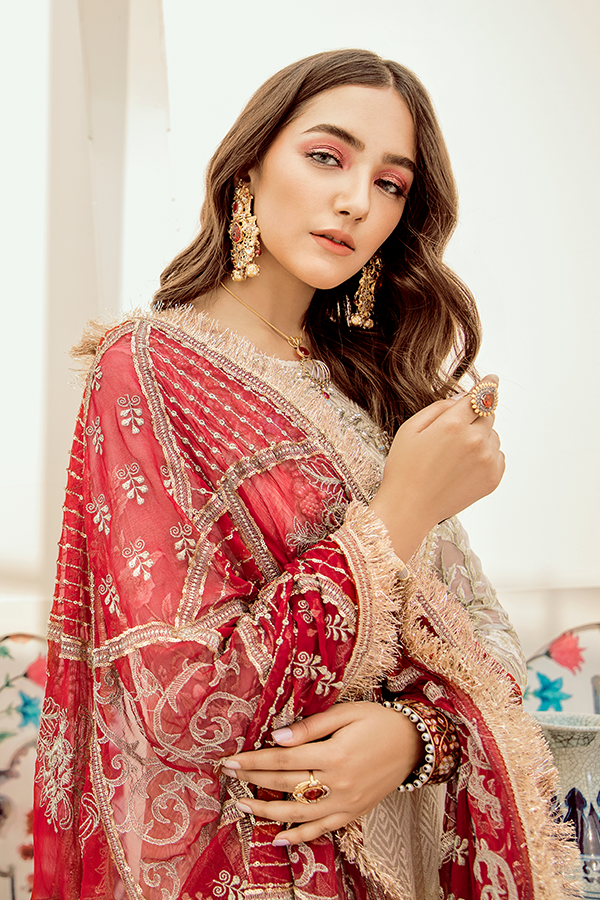 Stitched articles come with trousers tailored to match the unstitched trouser fabric provided. Please note that any appearance of shararas/ghararas in product images is for shoot purposes only unless otherwise specified in product details.