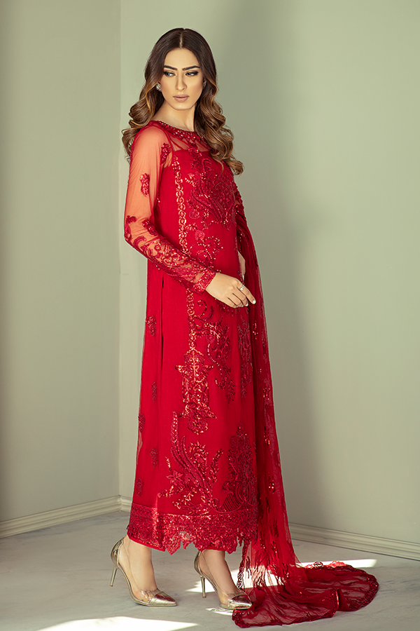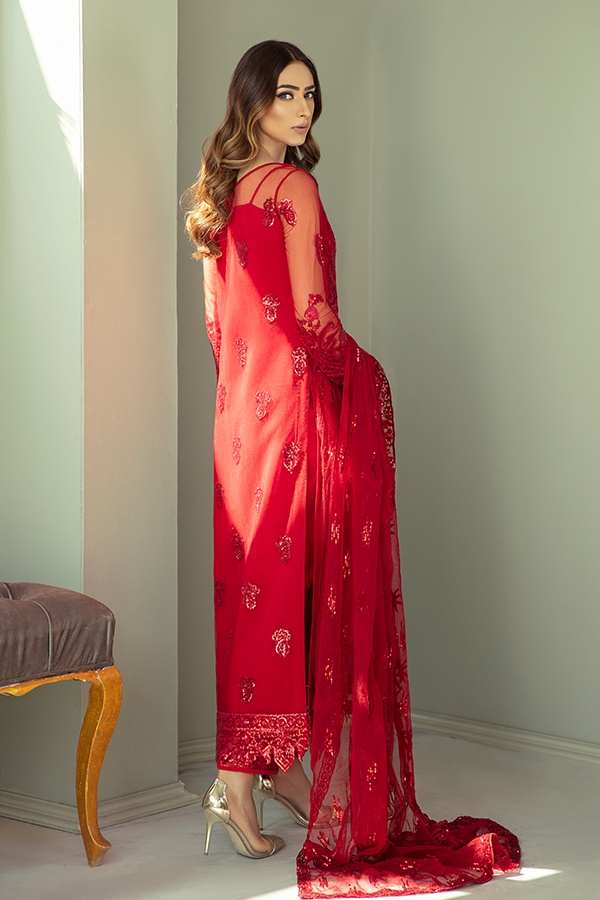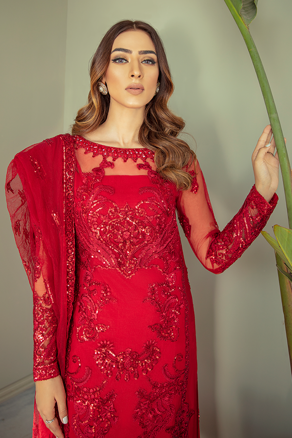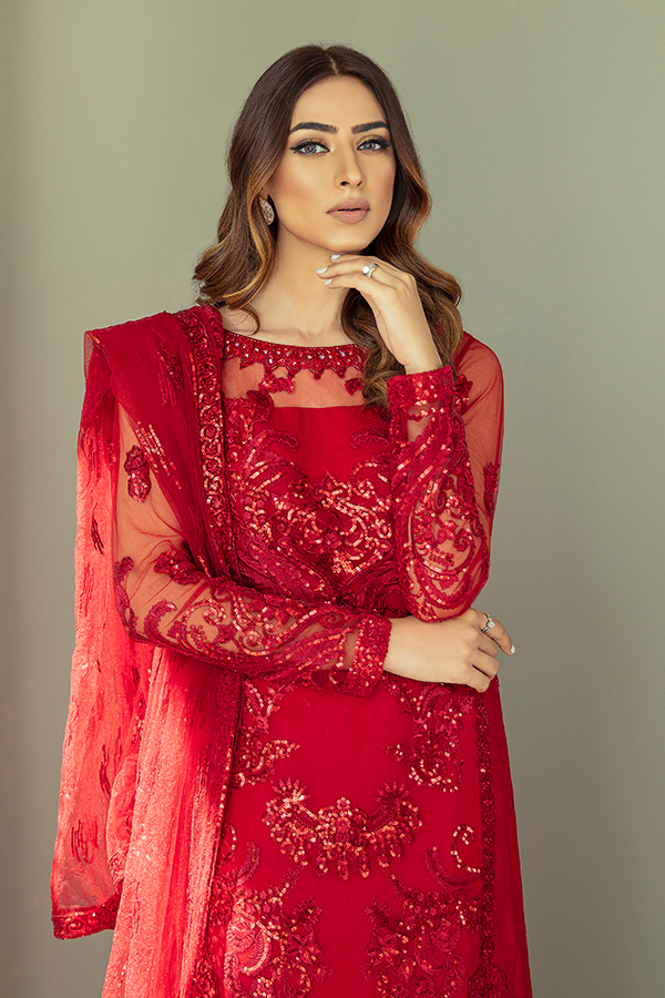 Stitched articles come with trousers tailored to match the unstitched trouser fabric provided. Please note that any appearance of shararas/ghararas in product images is for shoot purposes only unless otherwise specified in product details.