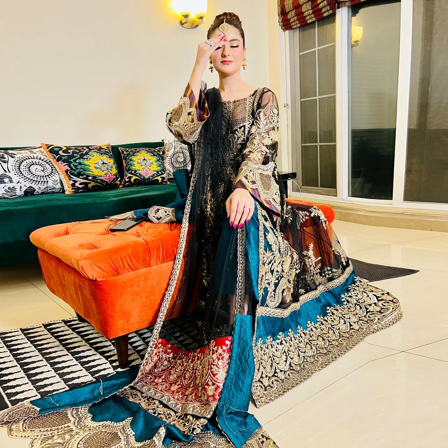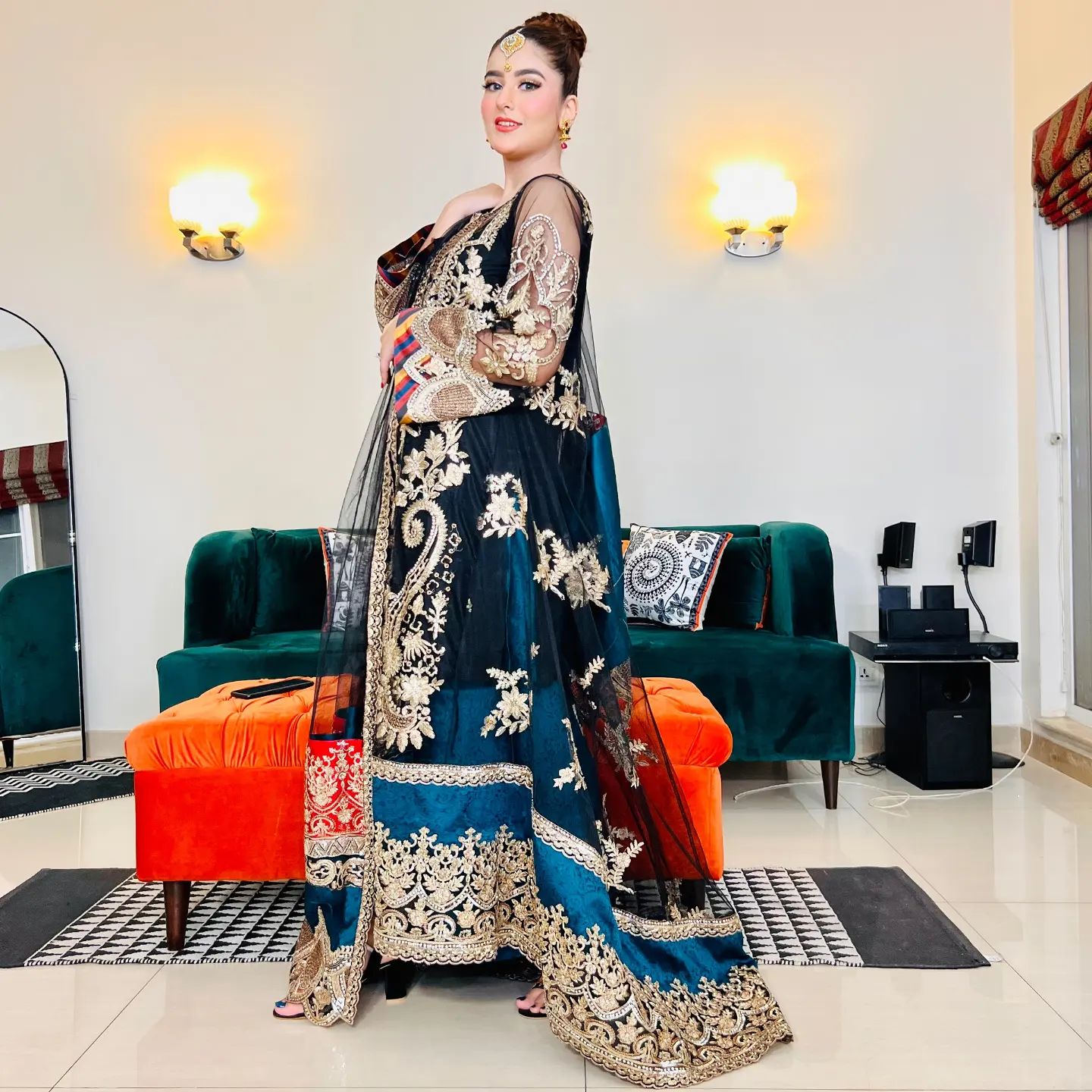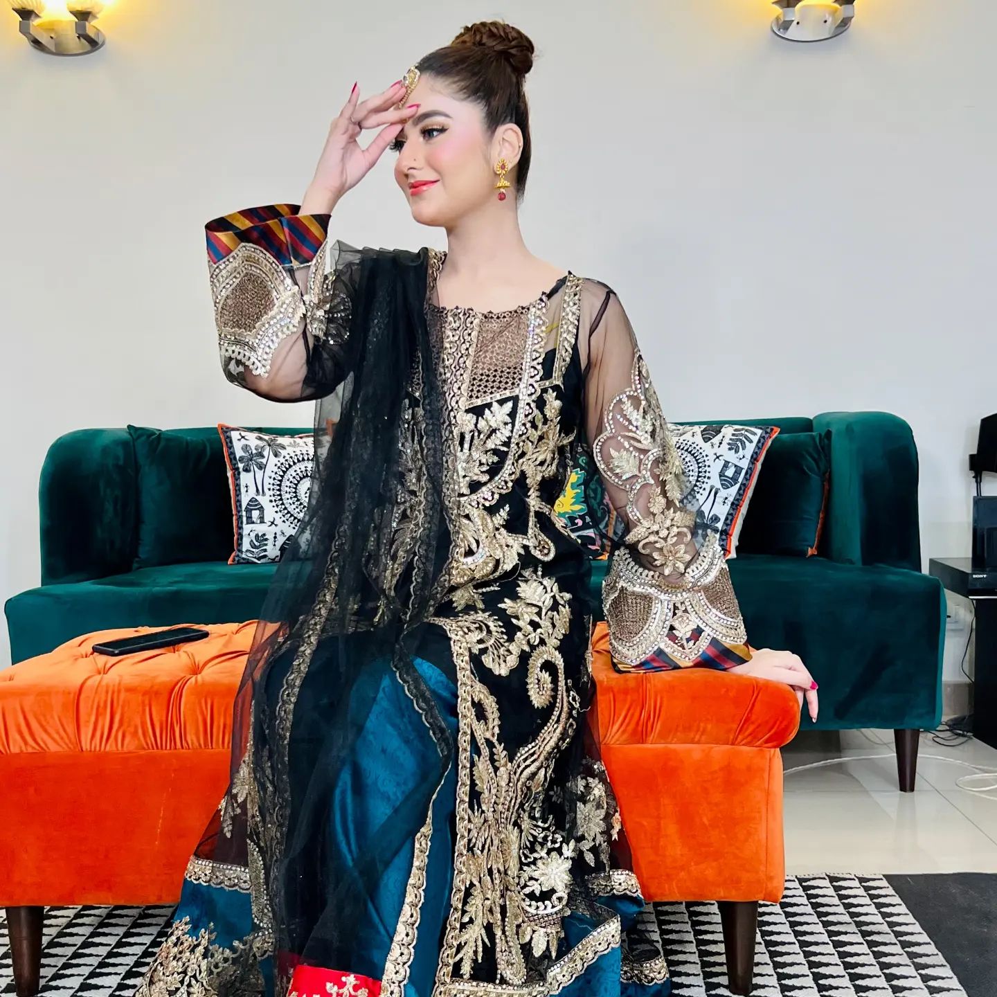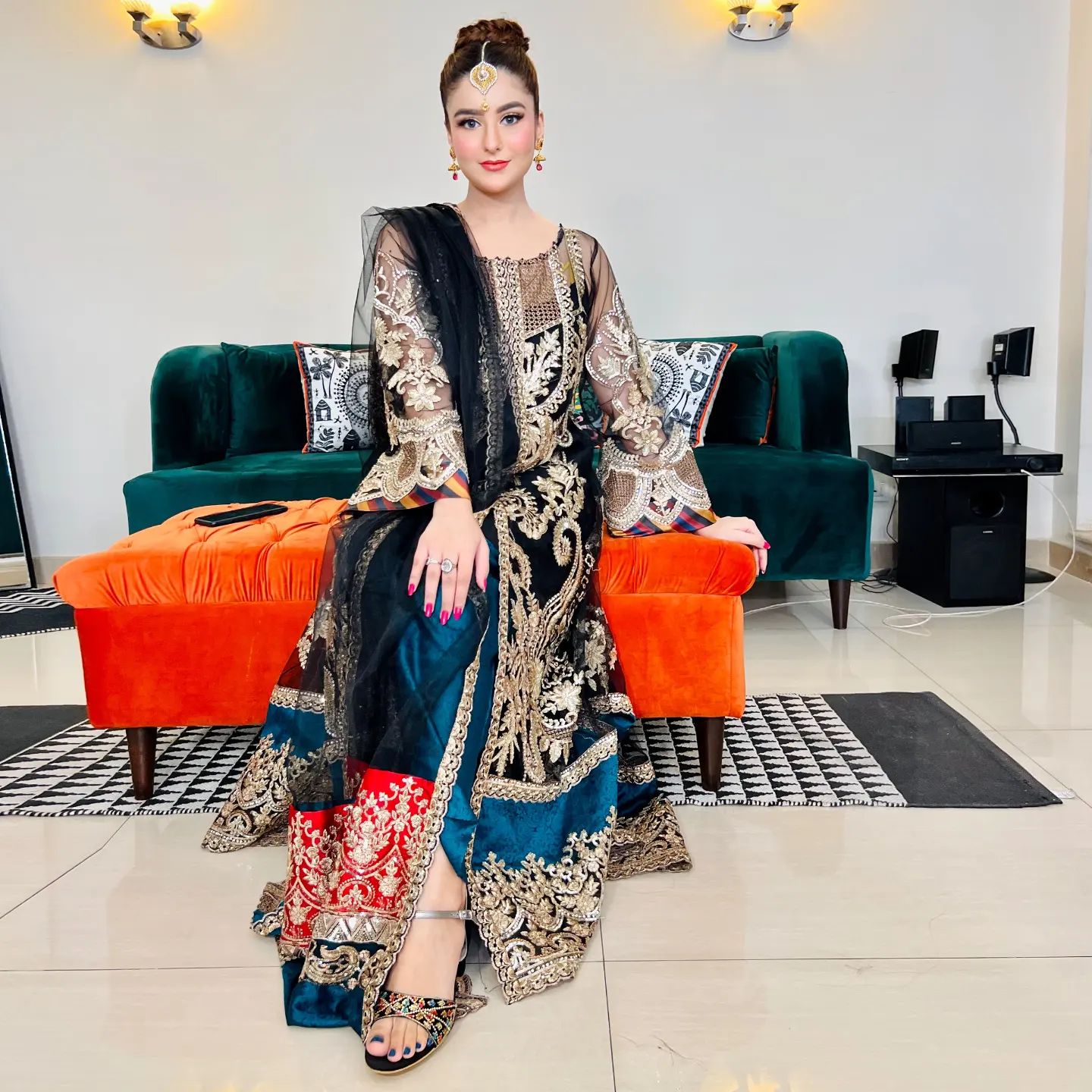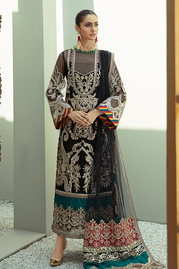 Stitched articles come with trousers tailored to match the unstitched trouser fabric provided. Please note that any appearance of shararas/ghararas in product images is for shoot purposes only unless otherwise specified in product details.