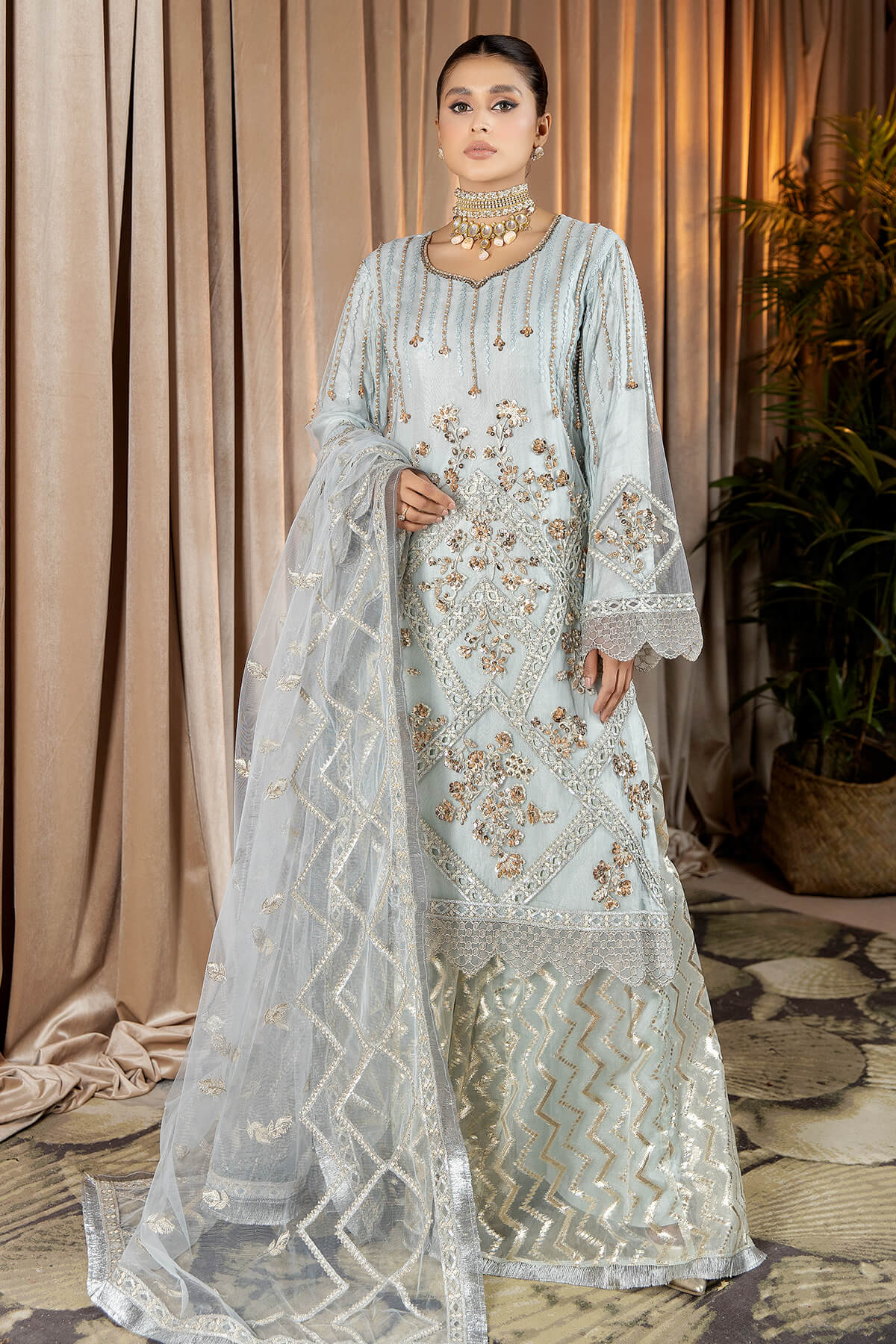 Embroidered organza dupatta.