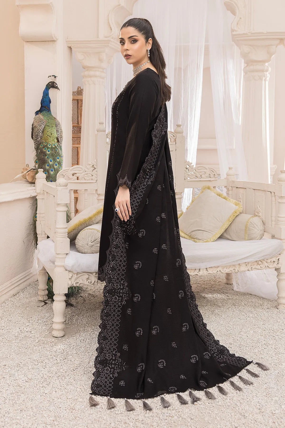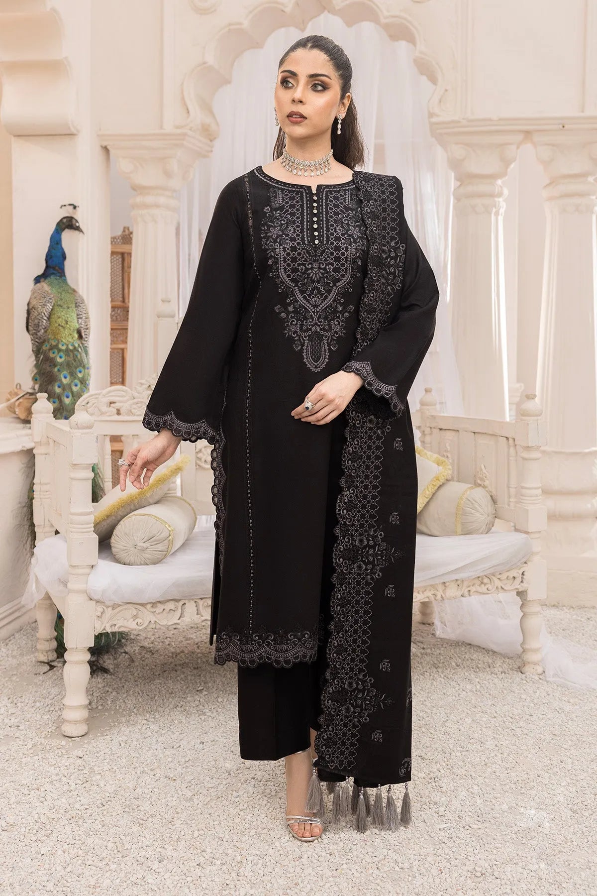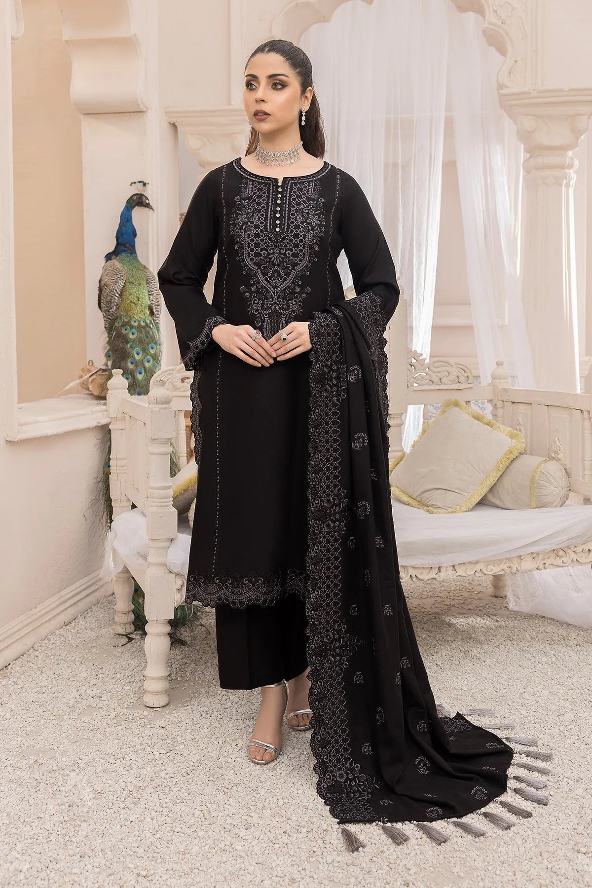 Stitched articles come with trousers tailored to match the unstitched trouser fabric provided. Please note that any appearance of shararas/ghararas in product images is for shoot purposes only unless otherwise specified in product details.