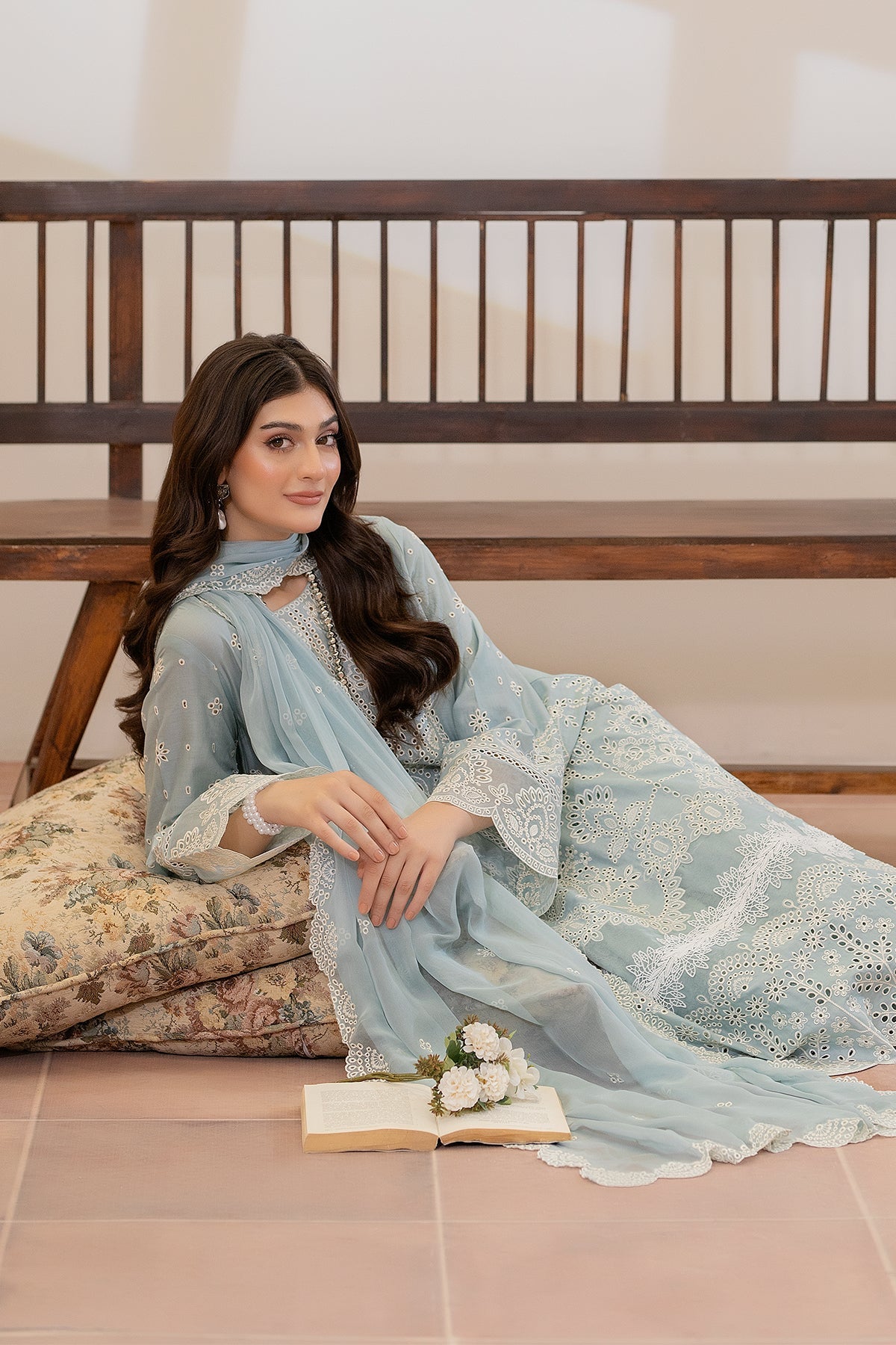 Embroidered Lawn – Light and breathable, adorned with intricate embroidery that adds depth and charm to the design.