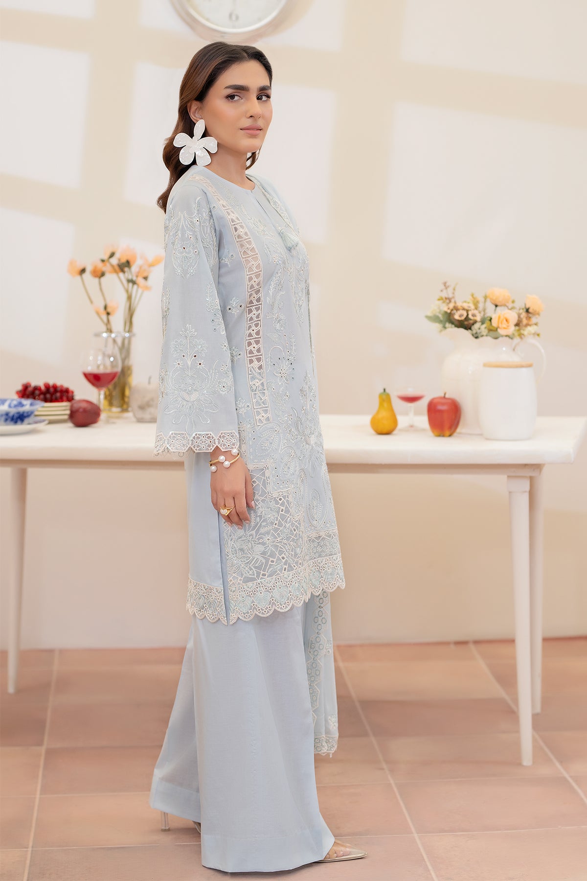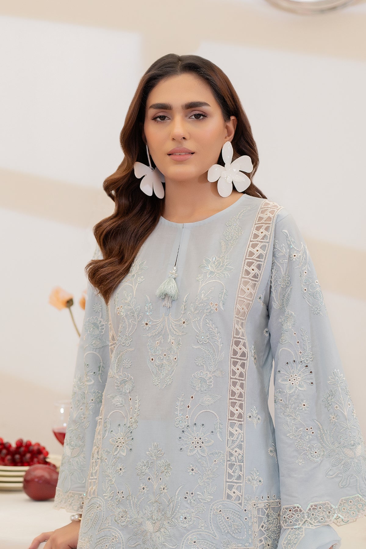 Embroidered Lawn – Light and breathable, adorned with intricate embroidery that adds depth and charm to the design.