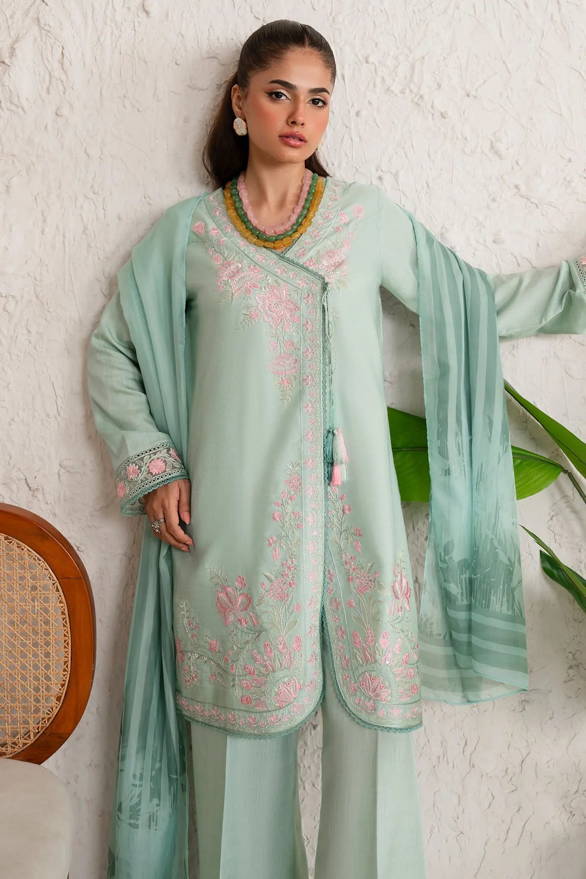 Stitched articles come with trousers tailored to match the unstitched trouser fabric provided. Please note that any appearance of shararas/ghararas in product images is for shoot purposes only unless otherwise specified in product details.