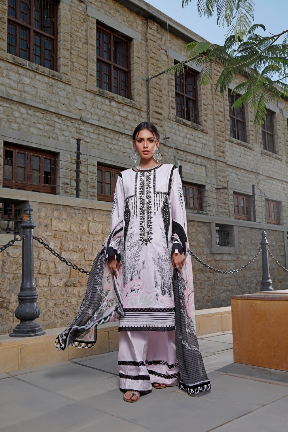 Stitched articles come with trousers tailored to match the unstitched trouser fabric provided. Please note that any appearance of shararas/ghararas in product images is for shoot purposes only unless otherwise specified in product details.
