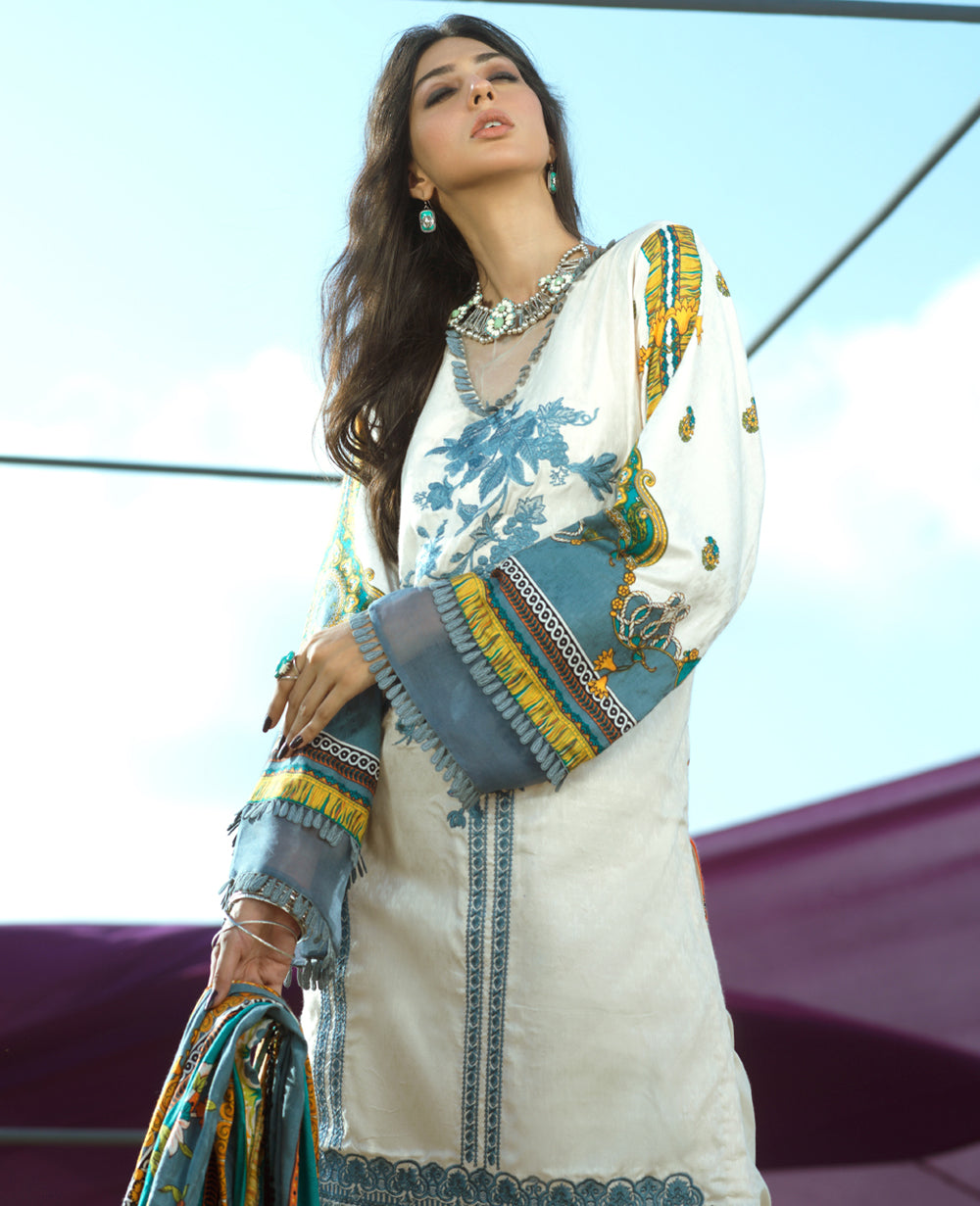 Stitched articles come with trousers tailored to match the unstitched trouser fabric provided. Please note that any appearance of shararas/ghararas in product images is for shoot purposes only unless otherwise specified in product details.