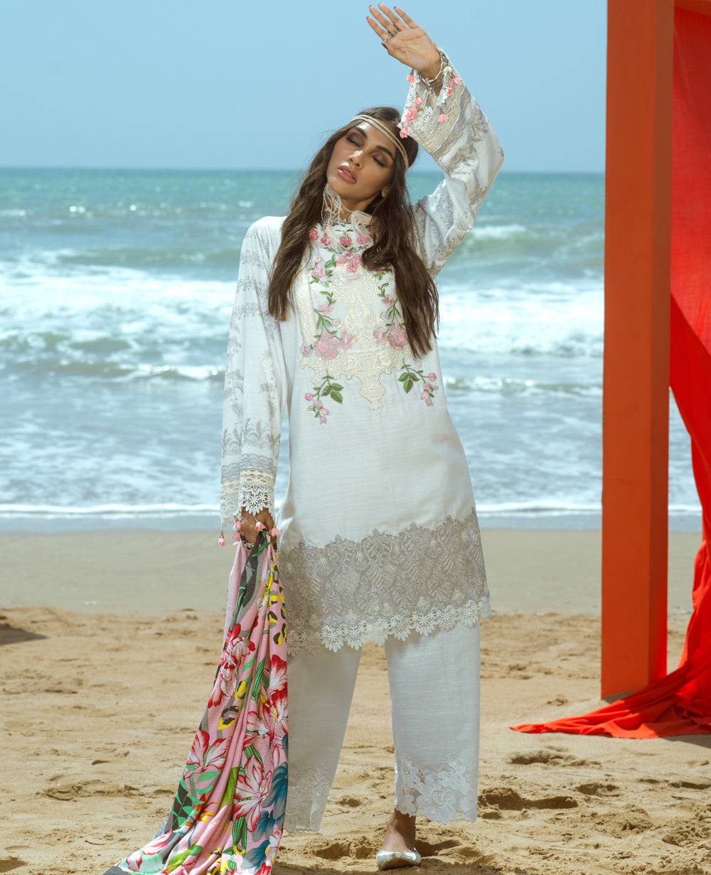 Stitched articles come with trousers tailored to match the unstitched trouser fabric provided. Please note that any appearance of shararas/ghararas in product images is for shoot purposes only unless otherwise specified in product details.