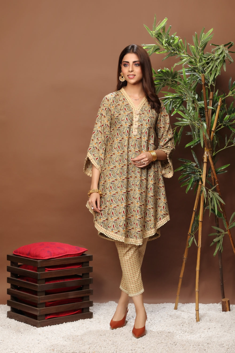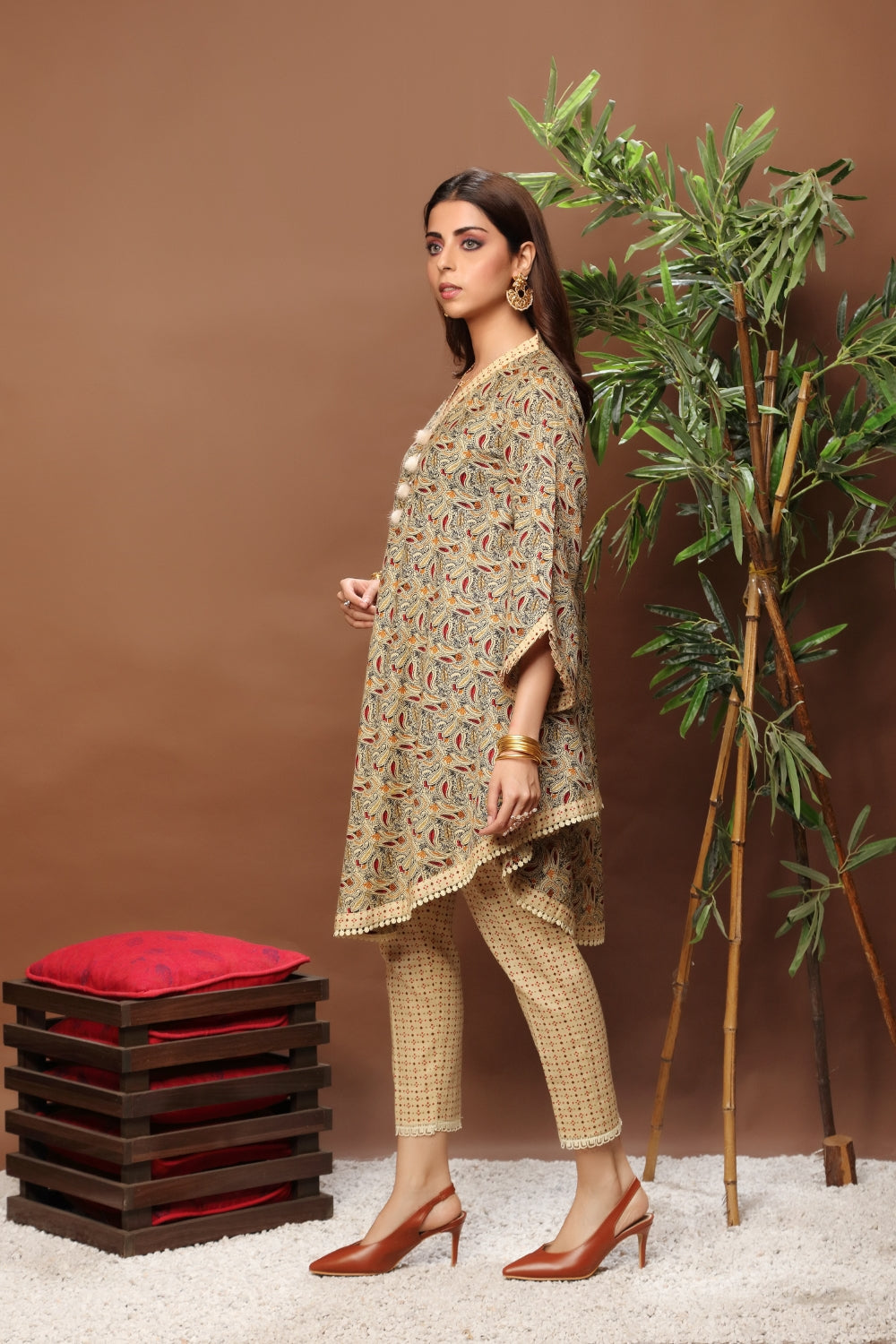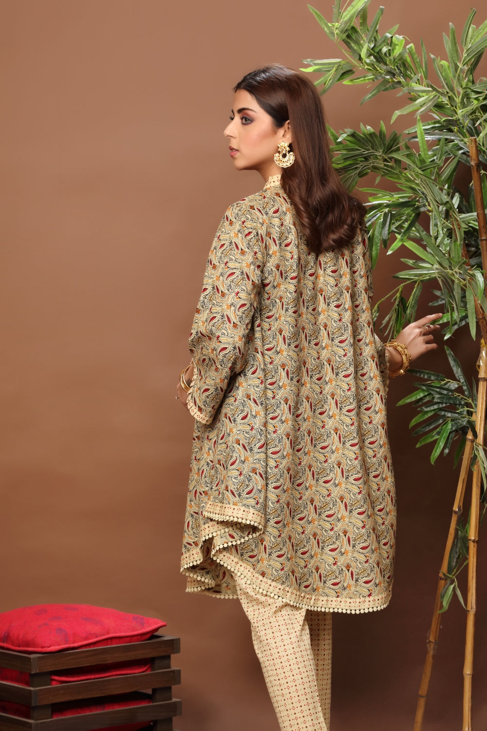 Stitched articles come with trousers tailored to match the unstitched trouser fabric provided. Please note that any appearance of shararas/ghararas in product images is for shoot purposes only unless otherwise specified in product details.