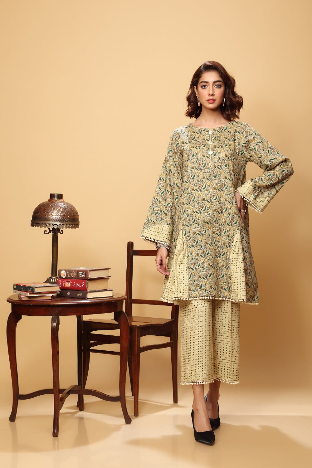 Stitched articles come with trousers tailored to match the unstitched trouser fabric provided. Please note that any appearance of shararas/ghararas in product images is for shoot purposes only unless otherwise specified in product details.