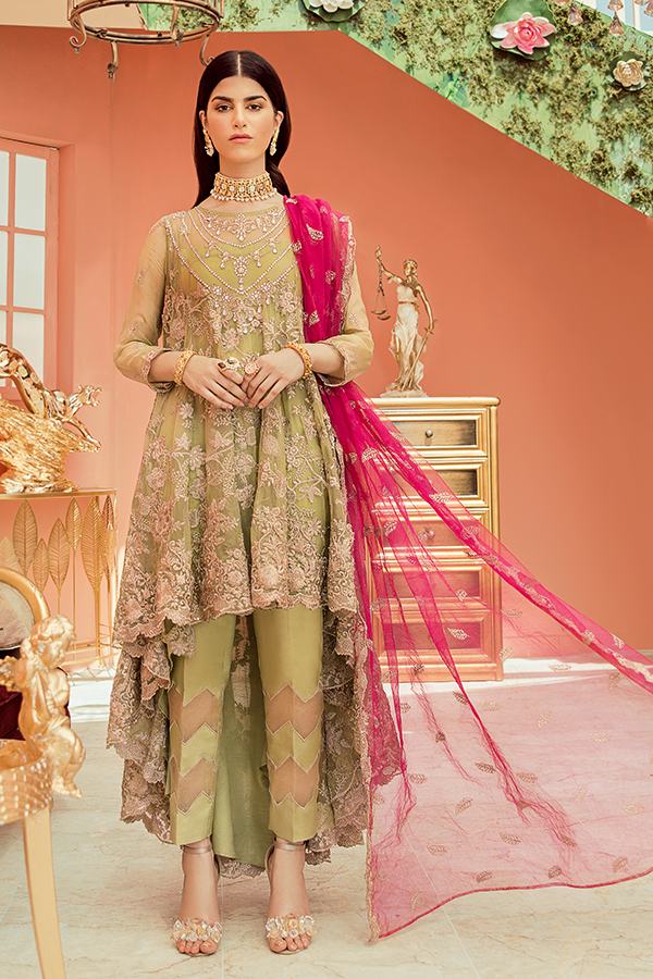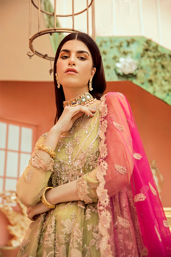 Stitched articles come with trousers tailored to match the unstitched trouser fabric provided. Please note that any appearance of shararas/ghararas in product images is for shoot purposes only unless otherwise specified in product details.