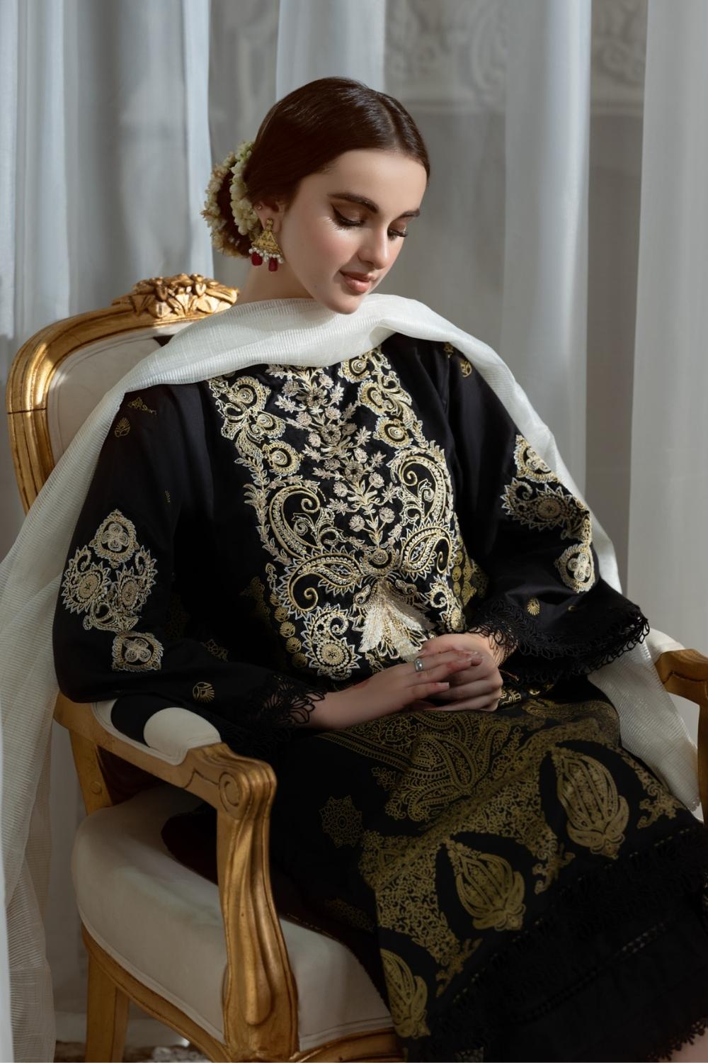 3PC Unstitched Printed+Embroidered Lawn Shirt | Banarsi Dupatta | Cambric Dyed Trouser