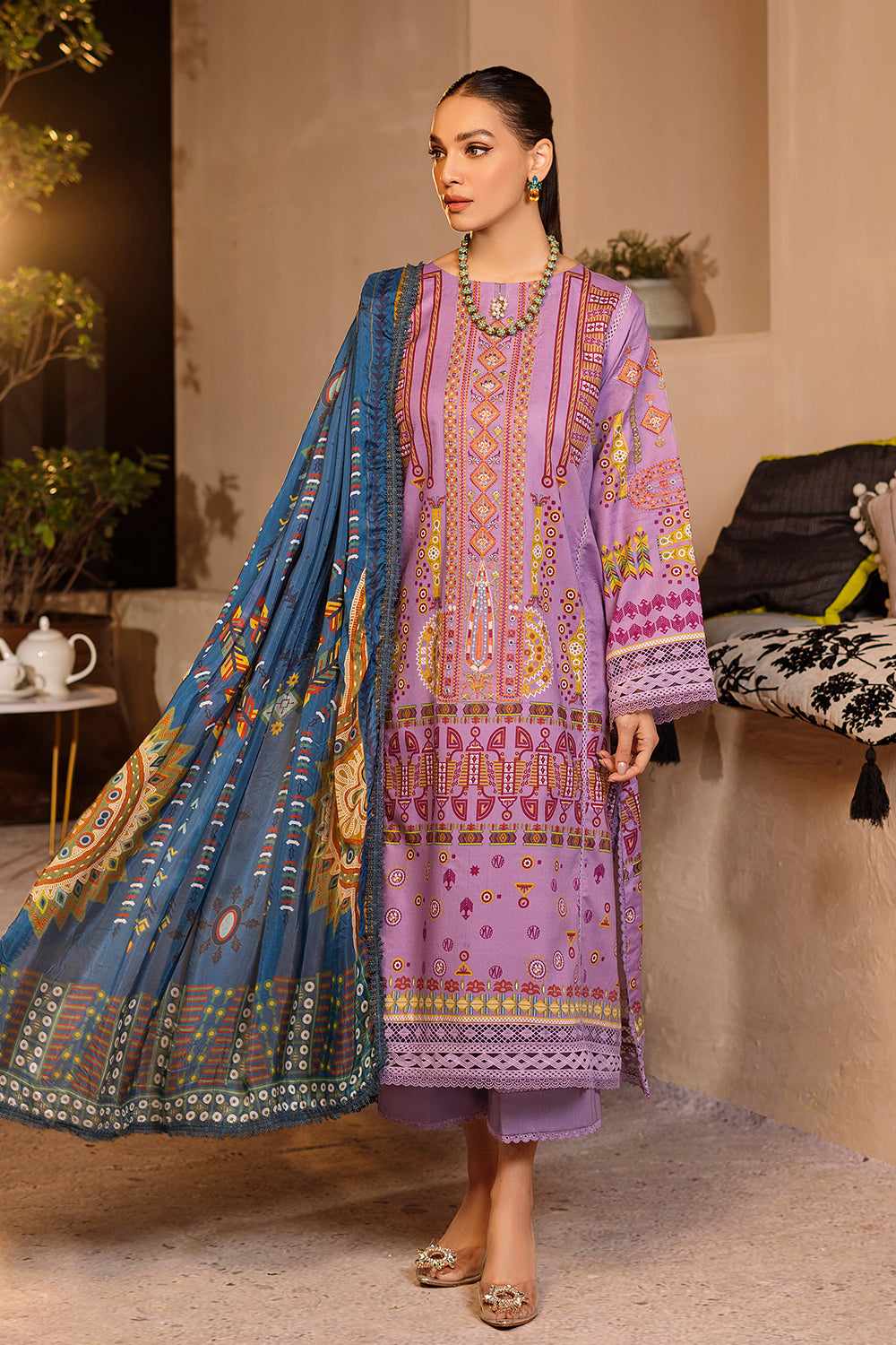 3 PC Unstitched Emboridered + Printed Shirt + Printed Dupatta + Dyed Trouser