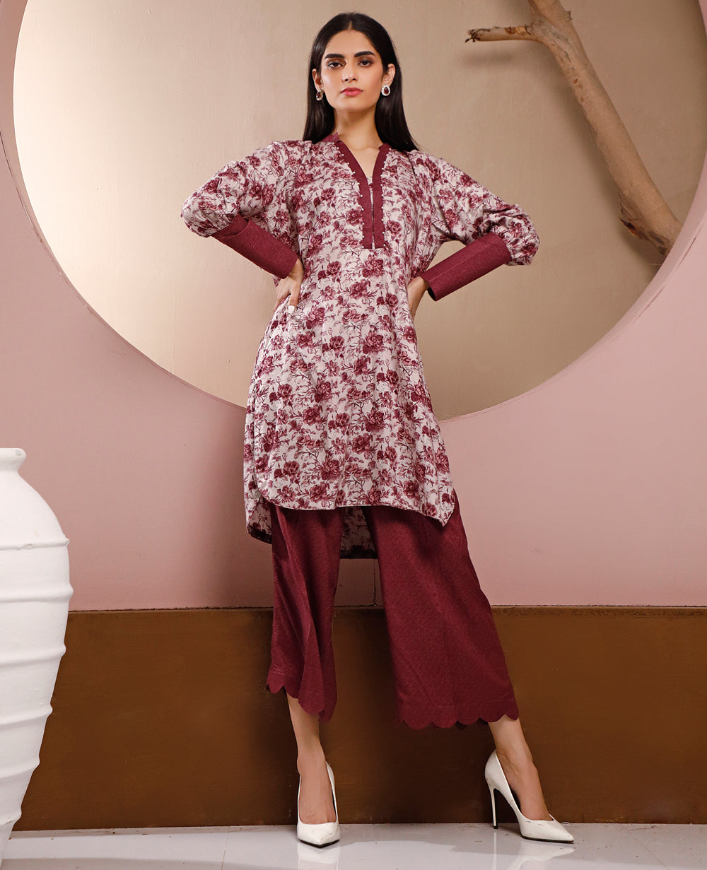Stitched articles come with trousers tailored to match the unstitched trouser fabric provided. Please note that any appearance of shararas/ghararas in product images is for shoot purposes only unless otherwise specified in product details.