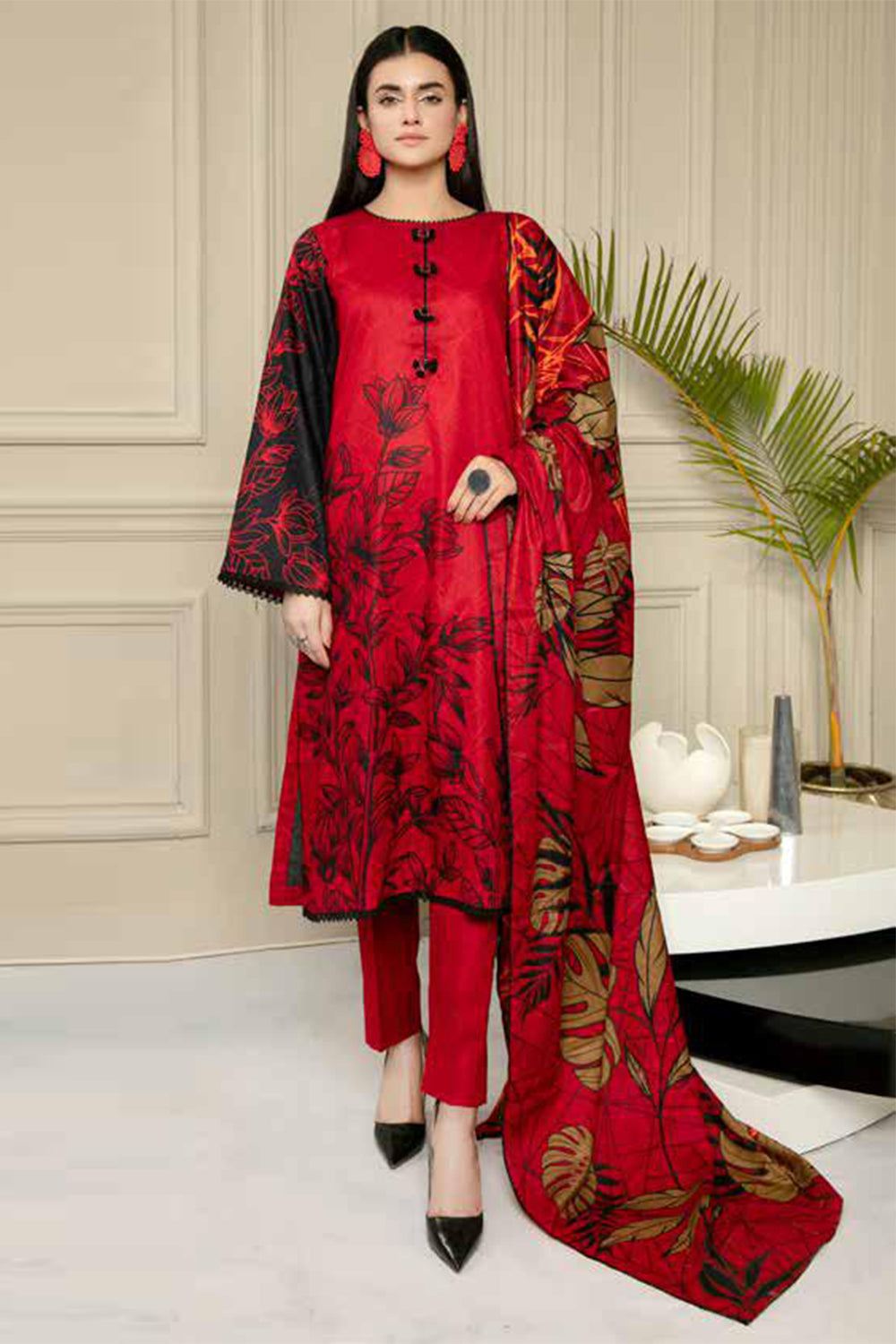 Stitched articles come with trousers tailored to match the unstitched trouser fabric provided. Please note that any appearance of shararas/ghararas in product images is for shoot purposes only unless otherwise specified in product details.