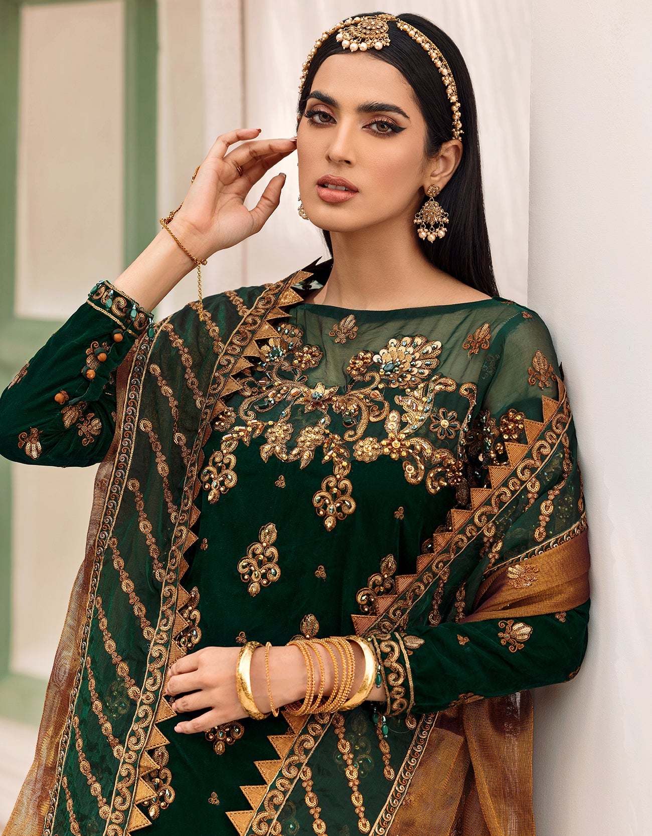 Organza Embroidered Front,Back and Chalk Lace with sequins work.