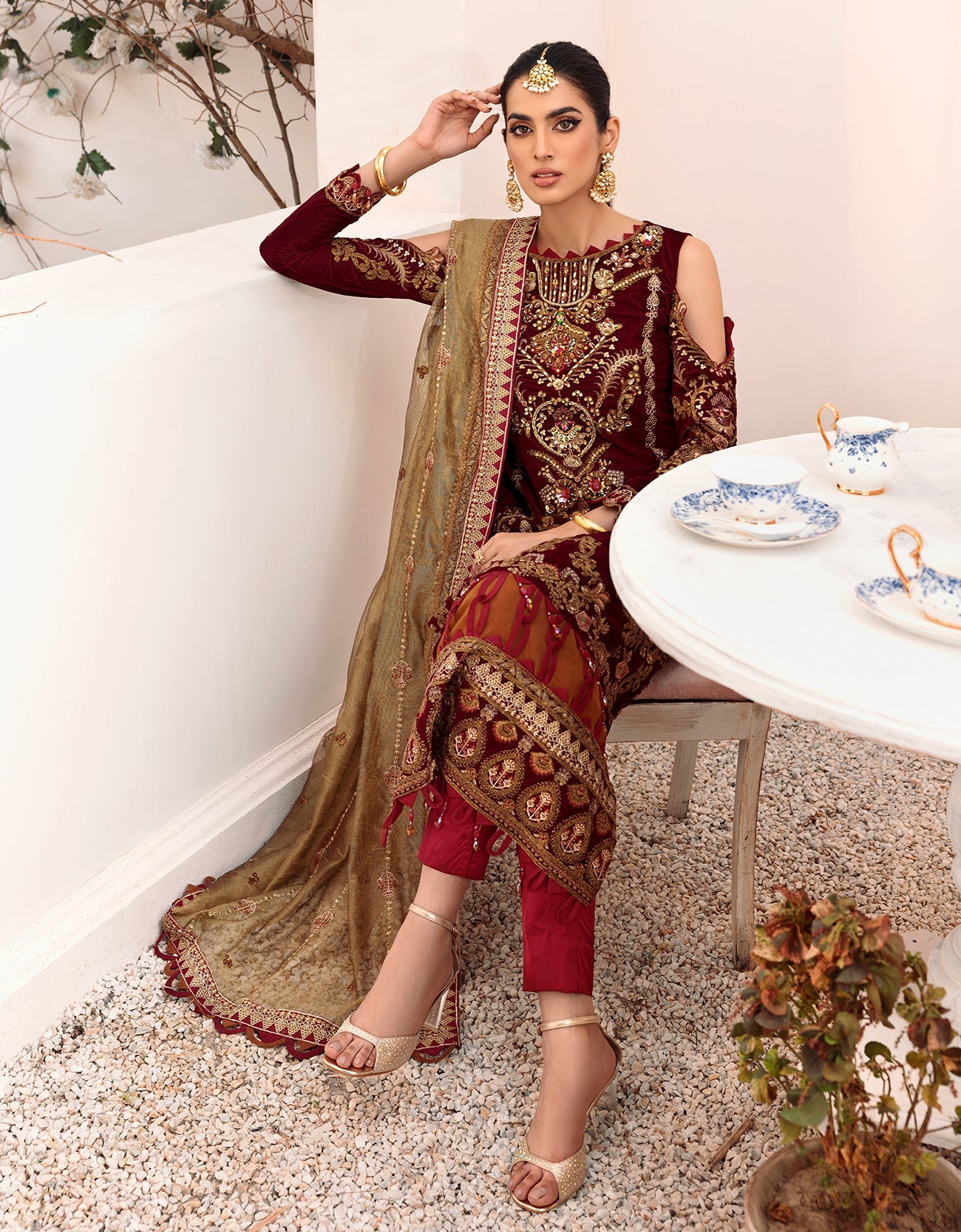 Velvet Embroidered Sleeves Lace with Cording and sequins work.