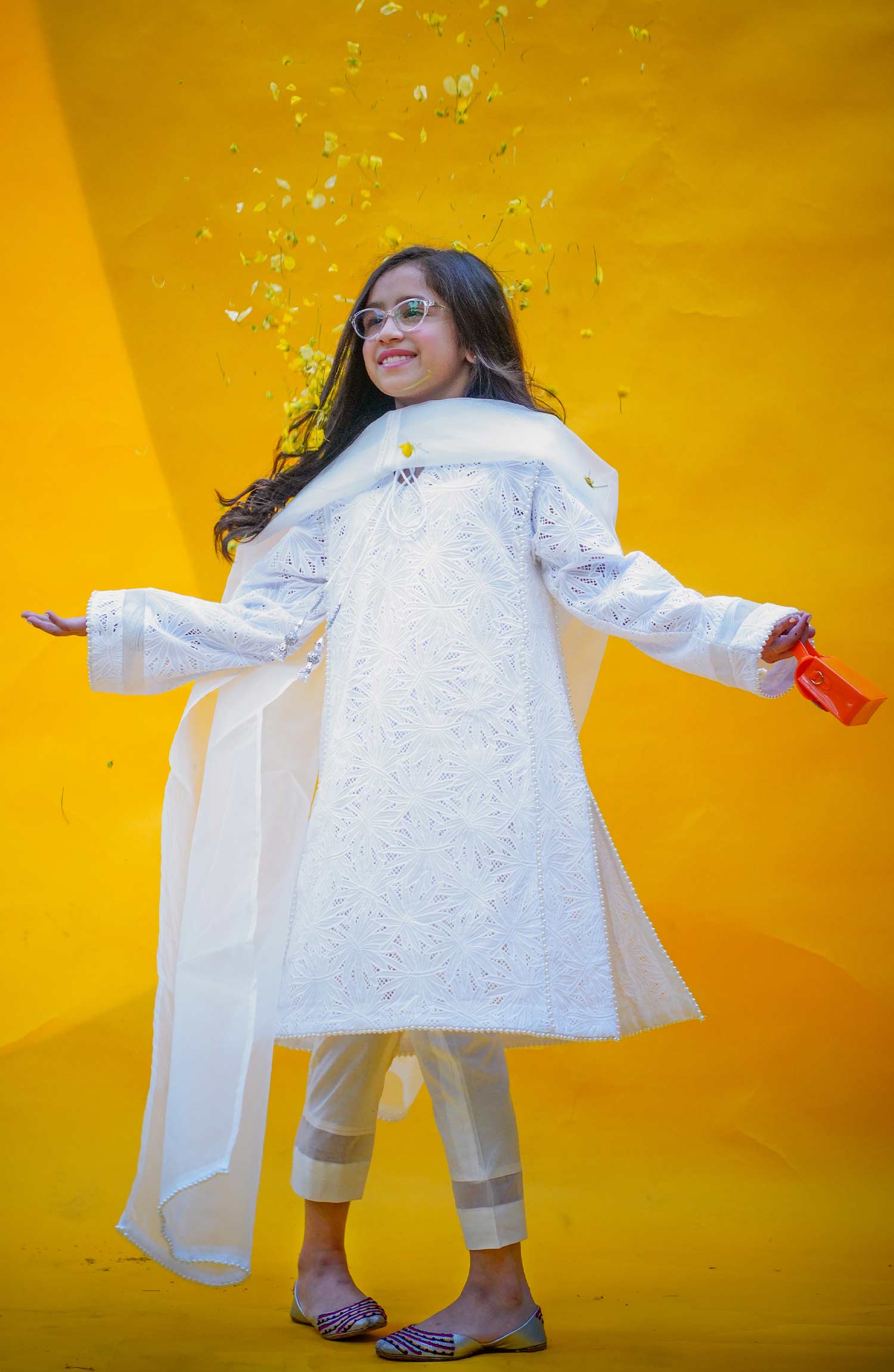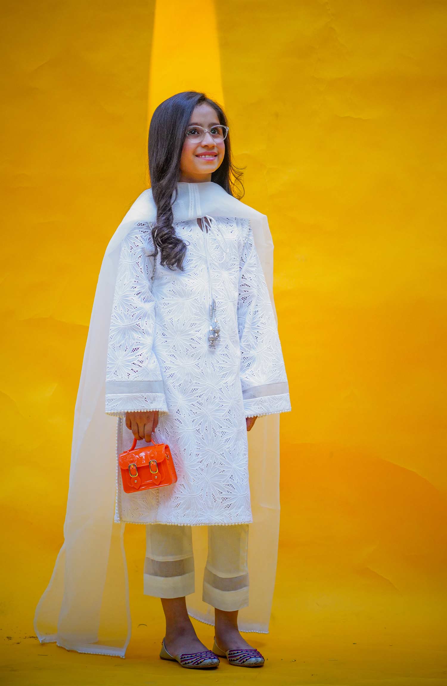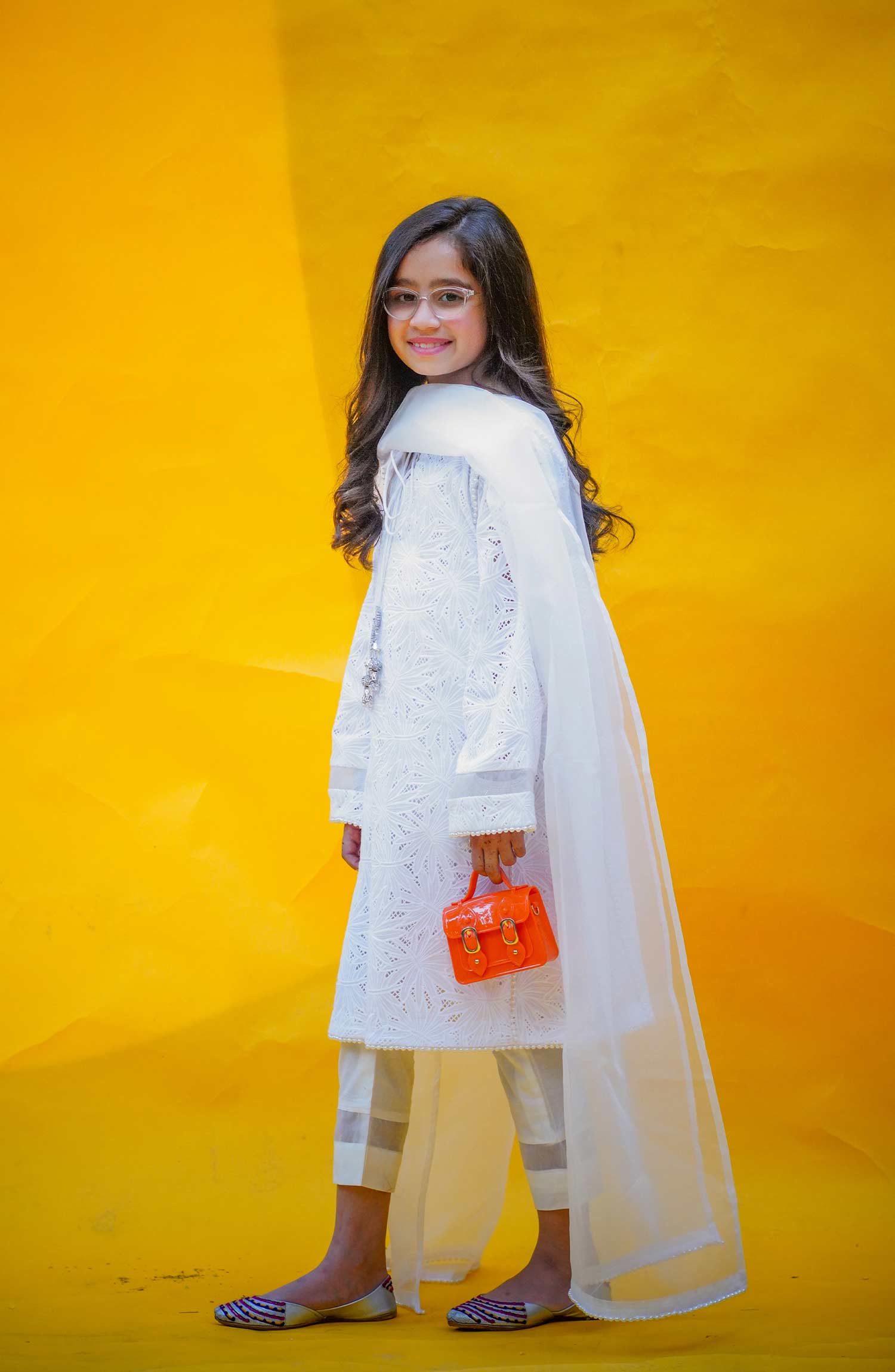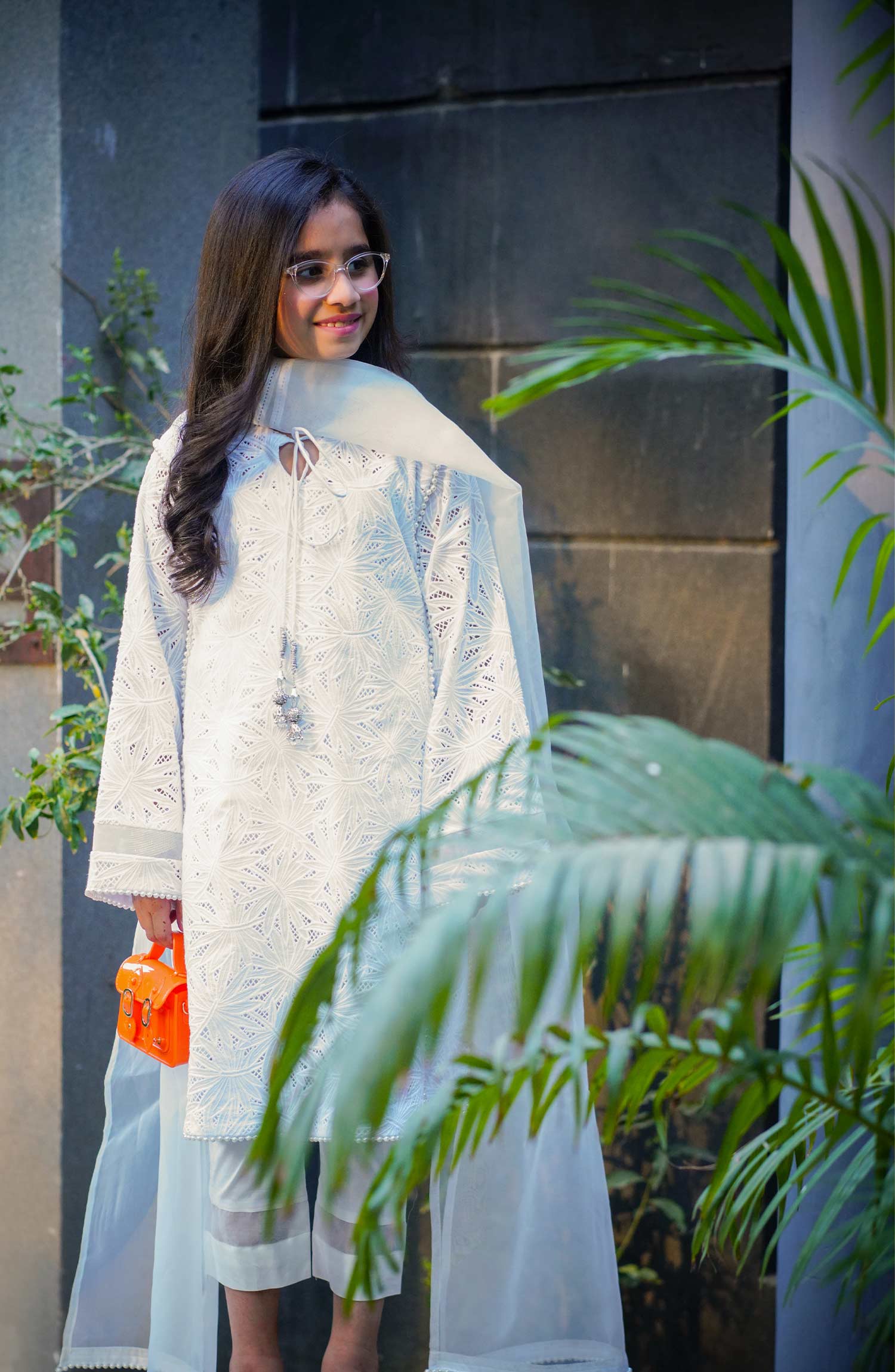 Stitched articles come with trousers tailored to match the unstitched trouser fabric provided. Please note that any appearance of shararas/ghararas in product images is for shoot purposes only unless otherwise specified in product details.
