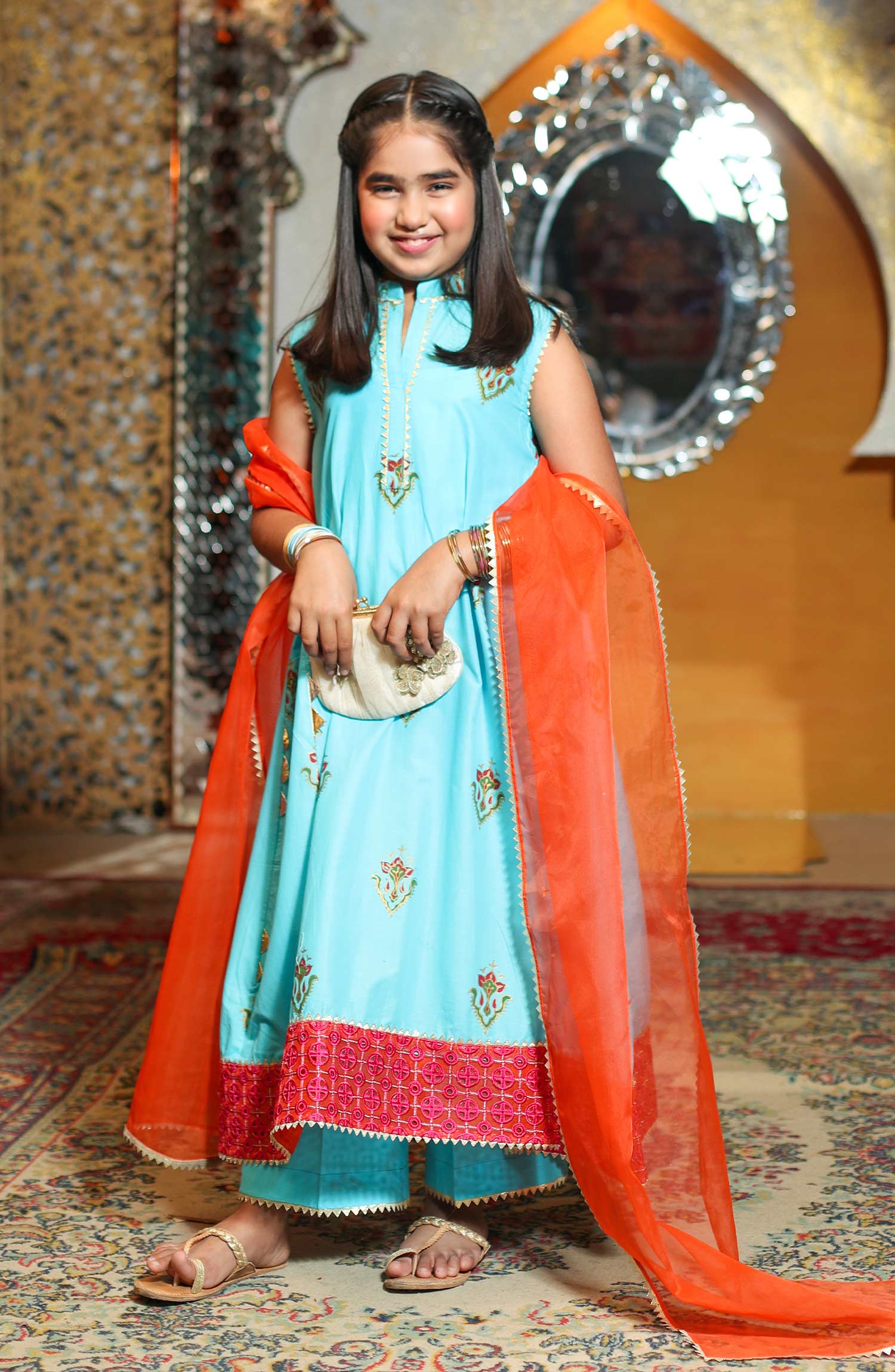 Stitched articles come with trousers tailored to match the unstitched trouser fabric provided. Please note that any appearance of shararas/ghararas in product images is for shoot purposes only unless otherwise specified in product details.