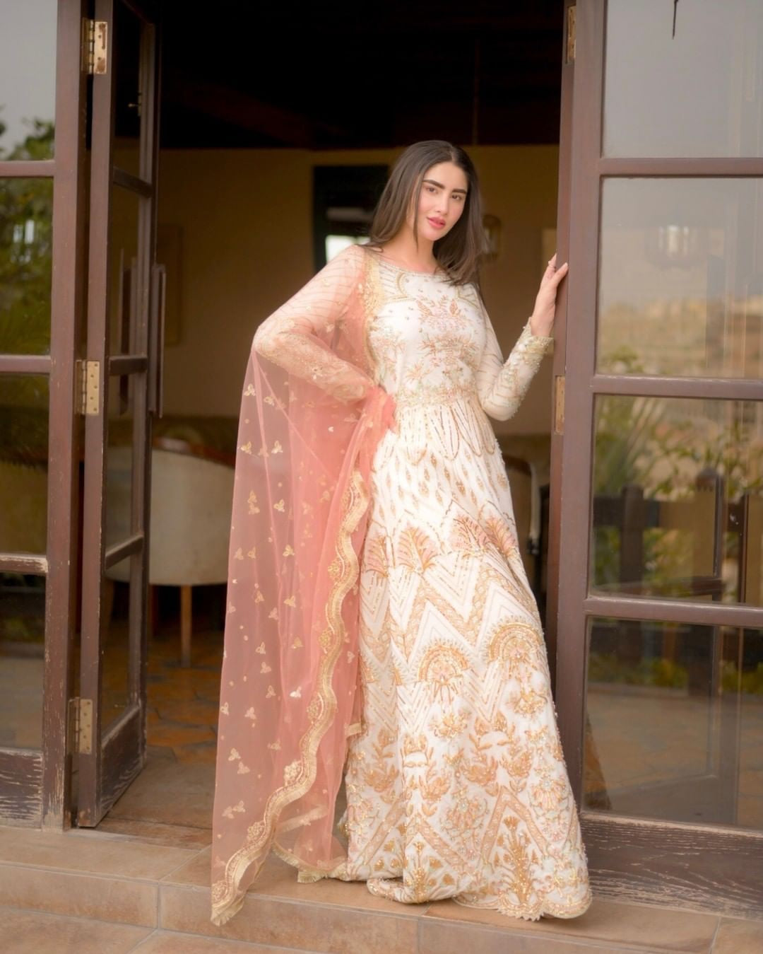 - Back: 1.4 yard Embroidered and Sequined on Organza Fabric