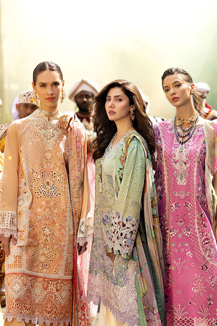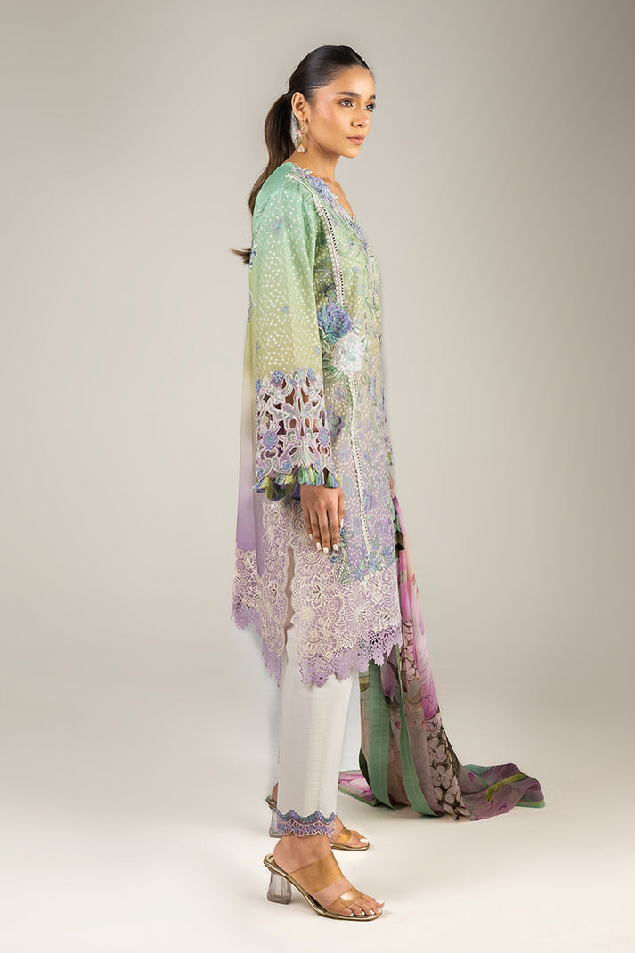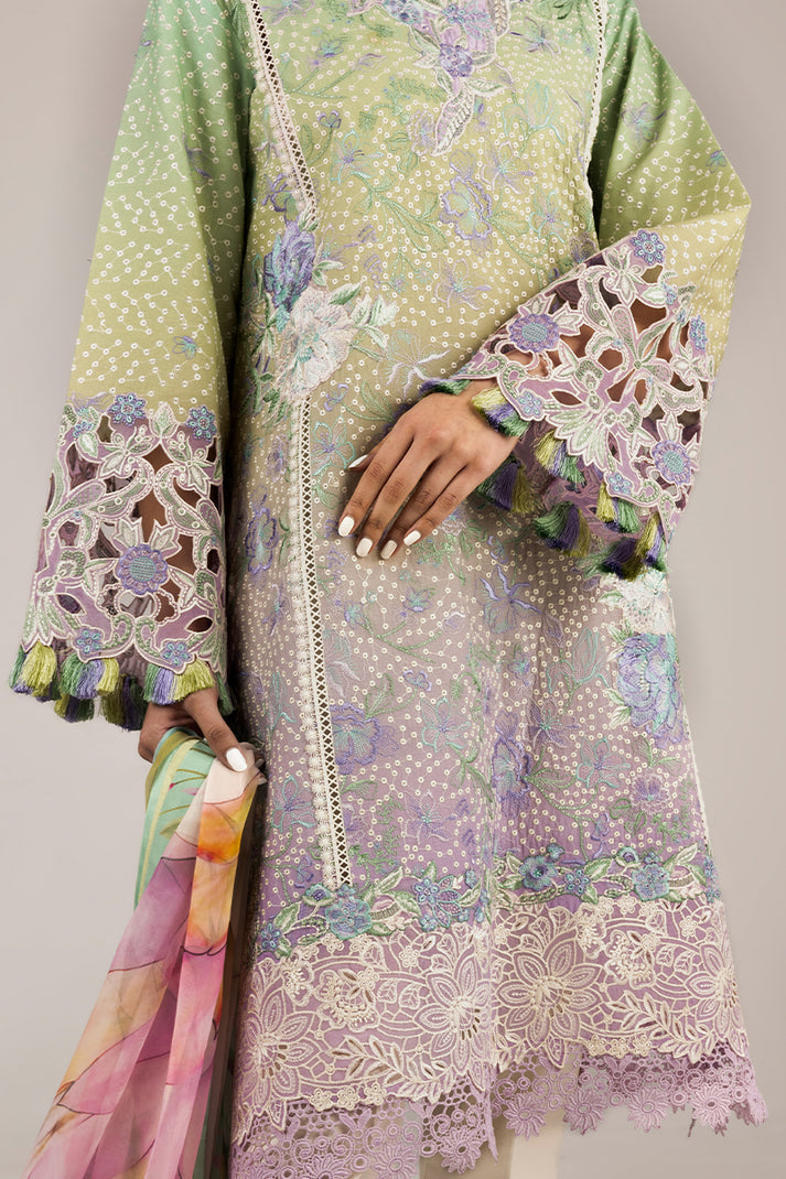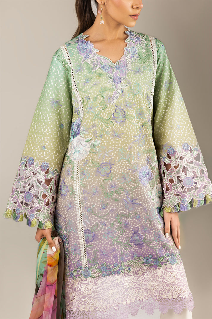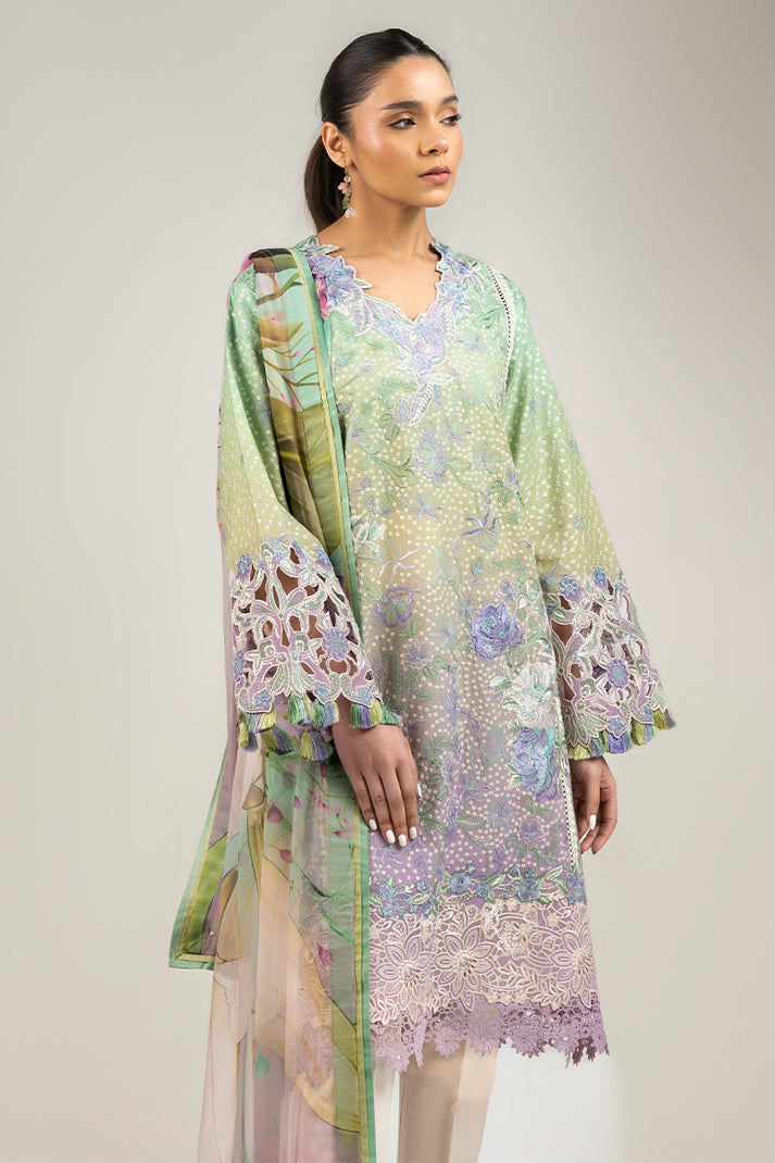 Printed chikan embroidered lawn sleeves