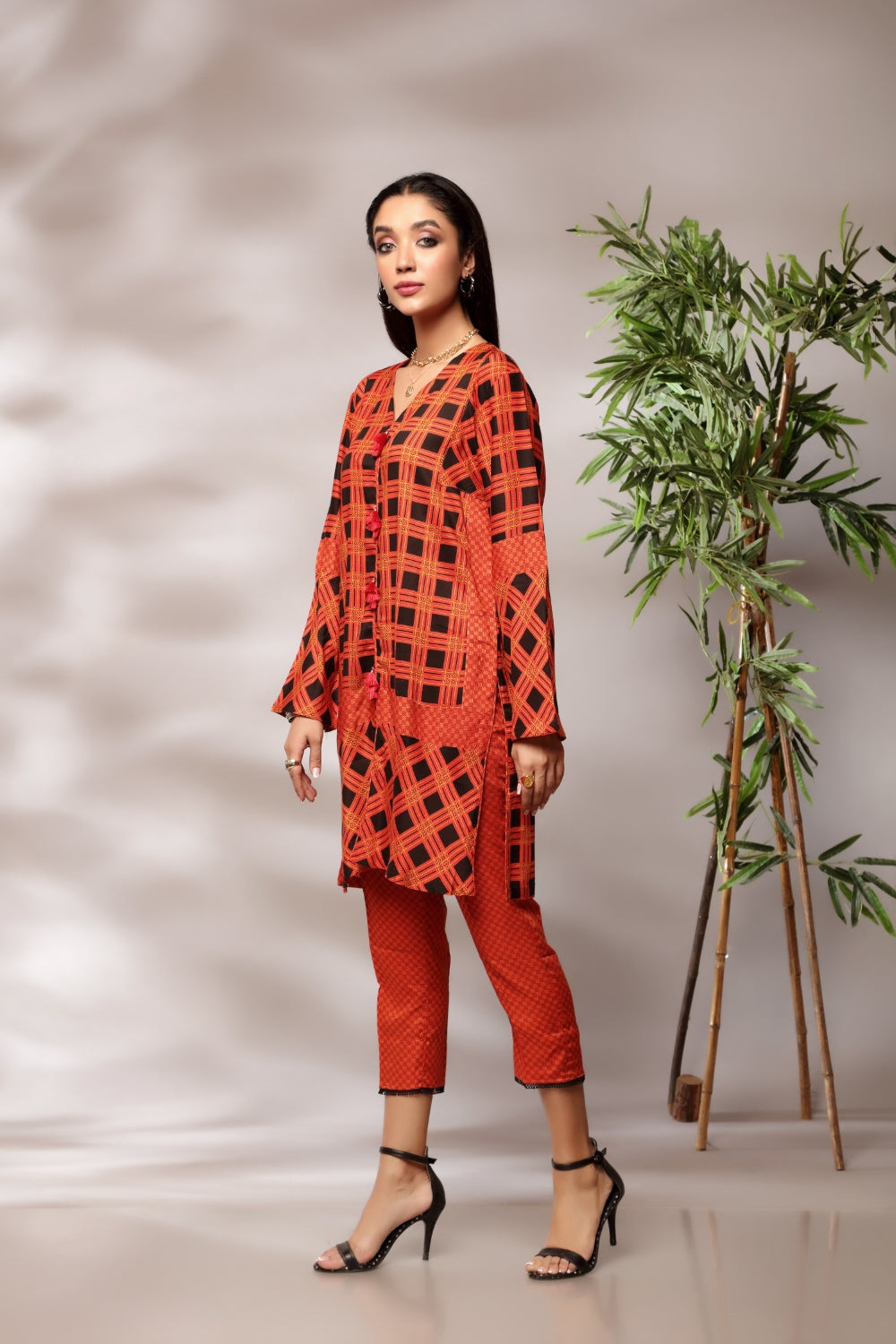 Stitched articles come with trousers tailored to match the unstitched trouser fabric provided. Please note that any appearance of shararas/ghararas in product images is for shoot purposes only unless otherwise specified in product details.