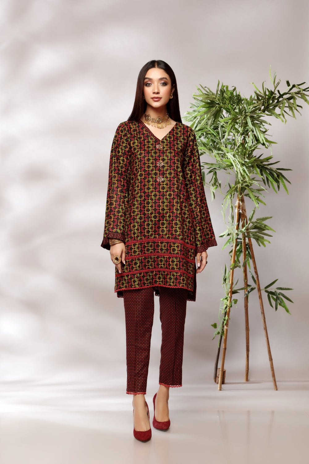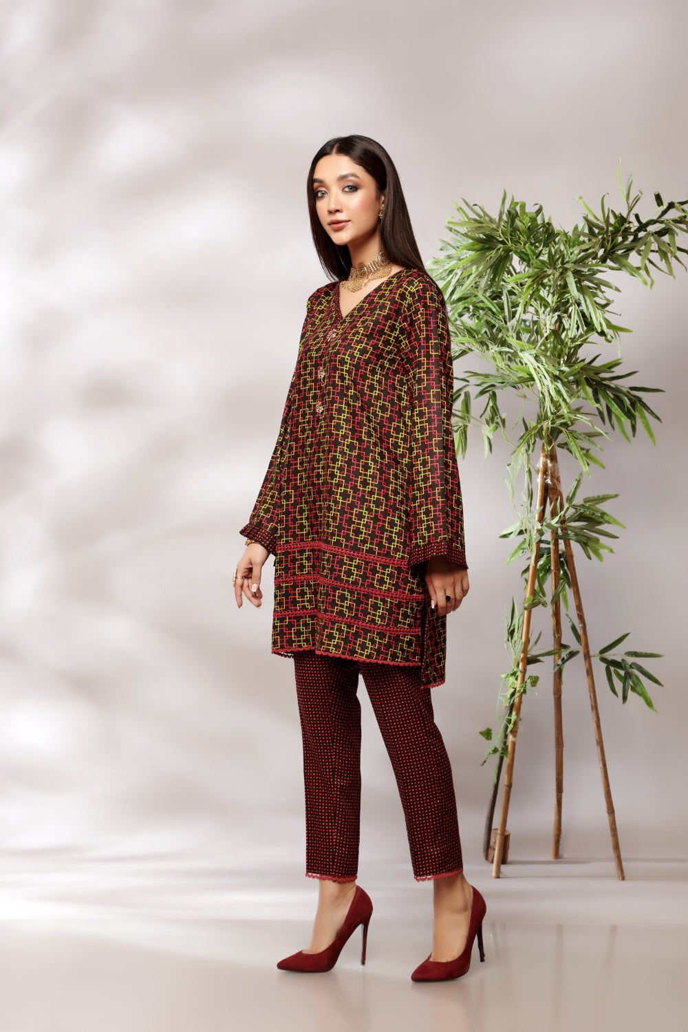 Stitched articles come with trousers tailored to match the unstitched trouser fabric provided. Please note that any appearance of shararas/ghararas in product images is for shoot purposes only unless otherwise specified in product details.