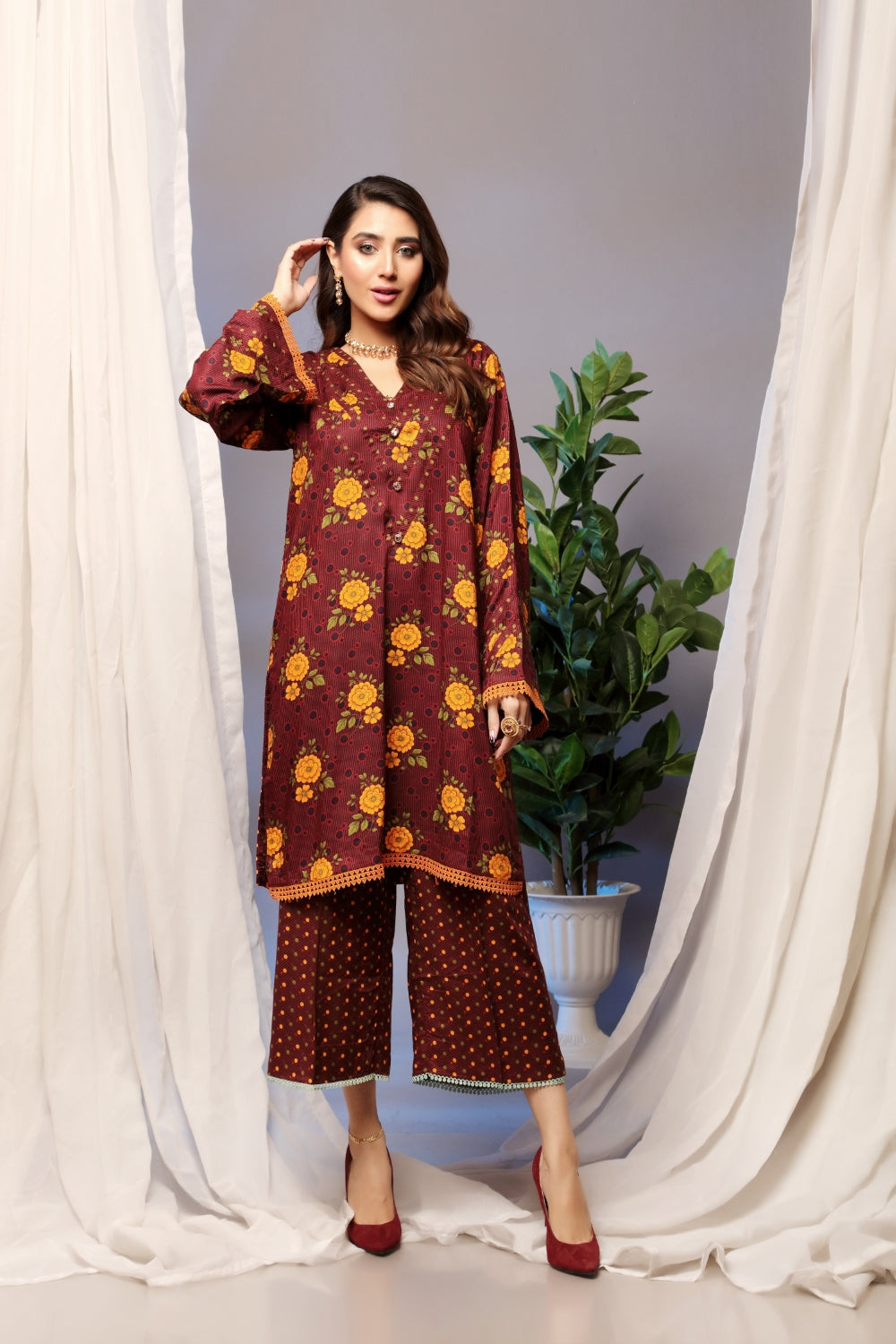 Stitched articles come with trousers tailored to match the unstitched trouser fabric provided. Please note that any appearance of shararas/ghararas in product images is for shoot purposes only unless otherwise specified in product details.