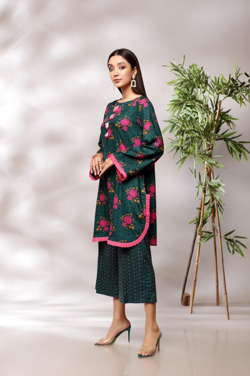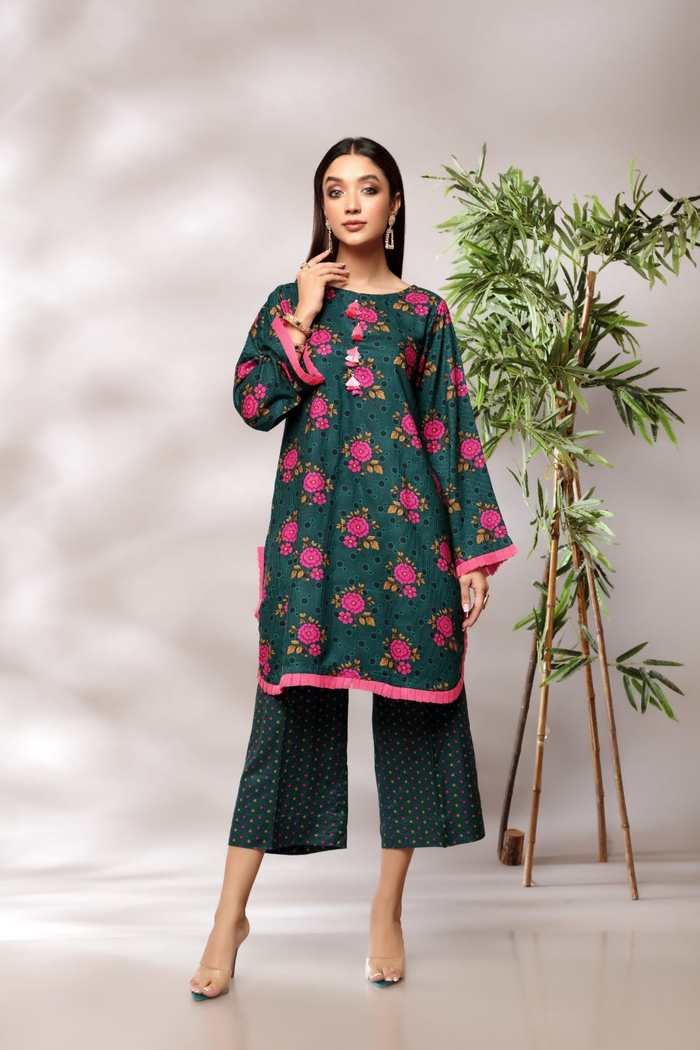 Stitched articles come with trousers tailored to match the unstitched trouser fabric provided. Please note that any appearance of shararas/ghararas in product images is for shoot purposes only unless otherwise specified in product details.