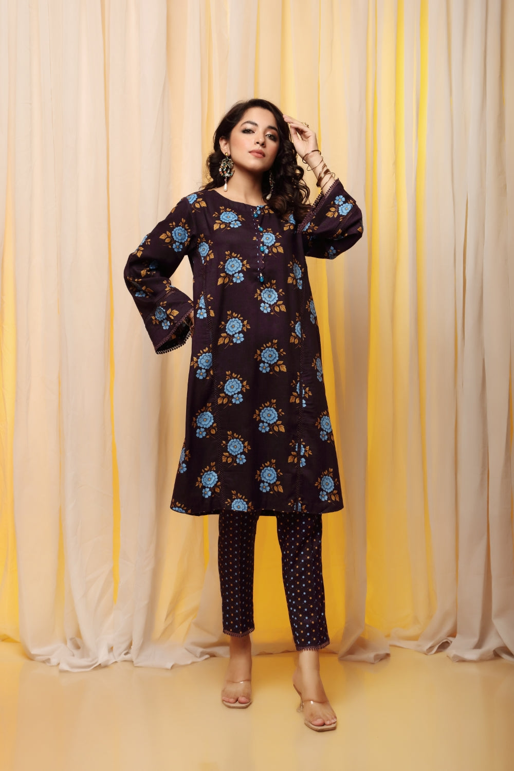 Stitched articles come with trousers tailored to match the unstitched trouser fabric provided. Please note that any appearance of shararas/ghararas in product images is for shoot purposes only unless otherwise specified in product details.
