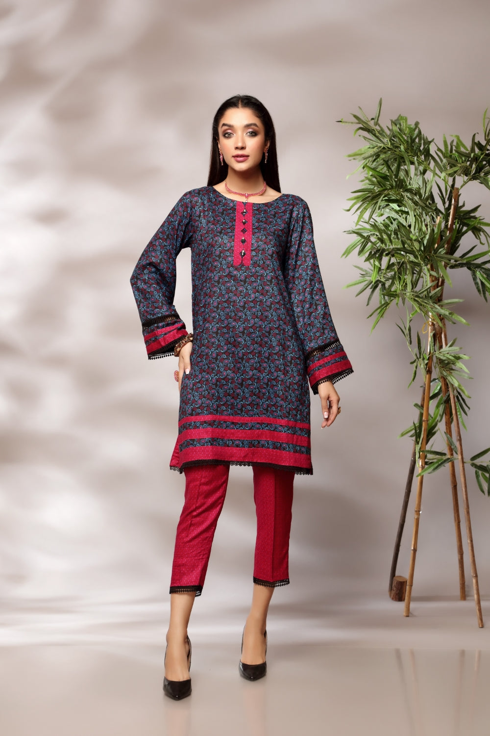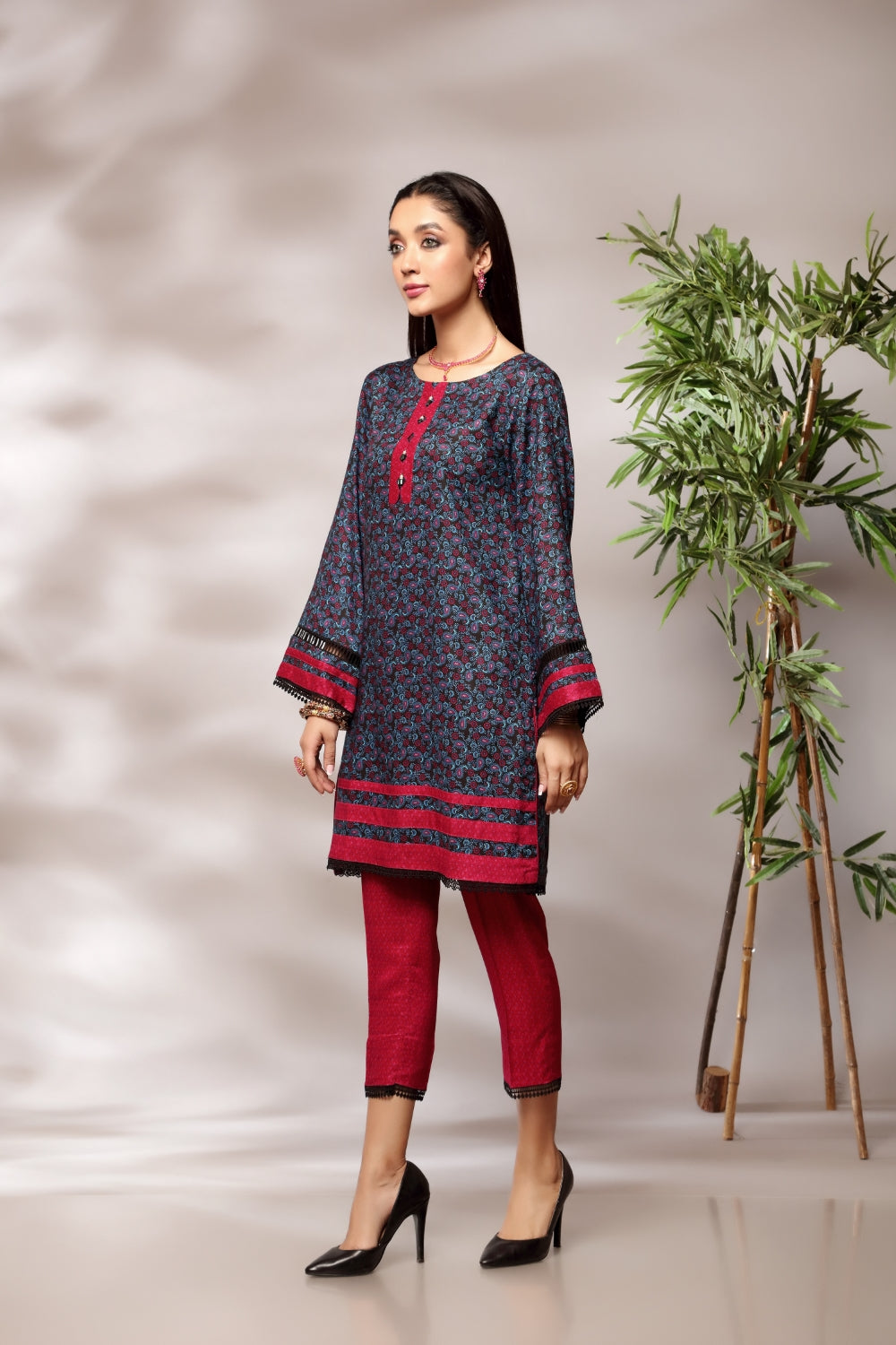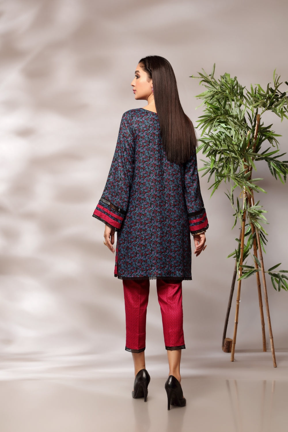 Stitched articles come with trousers tailored to match the unstitched trouser fabric provided. Please note that any appearance of shararas/ghararas in product images is for shoot purposes only unless otherwise specified in product details.