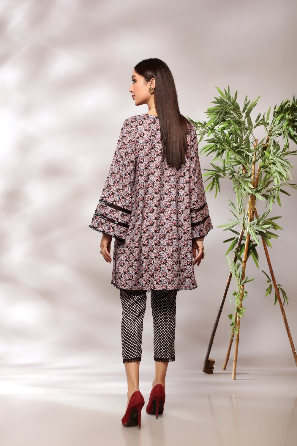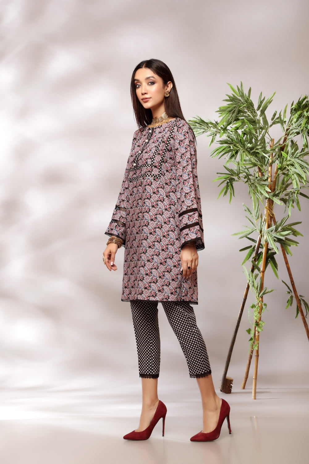 Stitched articles come with trousers tailored to match the unstitched trouser fabric provided. Please note that any appearance of shararas/ghararas in product images is for shoot purposes only unless otherwise specified in product details.