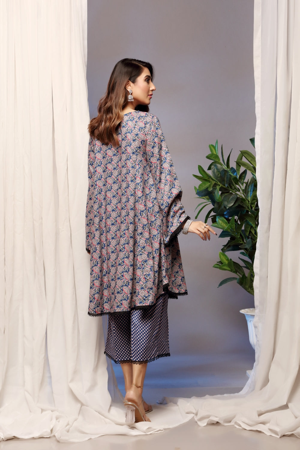 Stitched articles come with trousers tailored to match the unstitched trouser fabric provided. Please note that any appearance of shararas/ghararas in product images is for shoot purposes only unless otherwise specified in product details.
