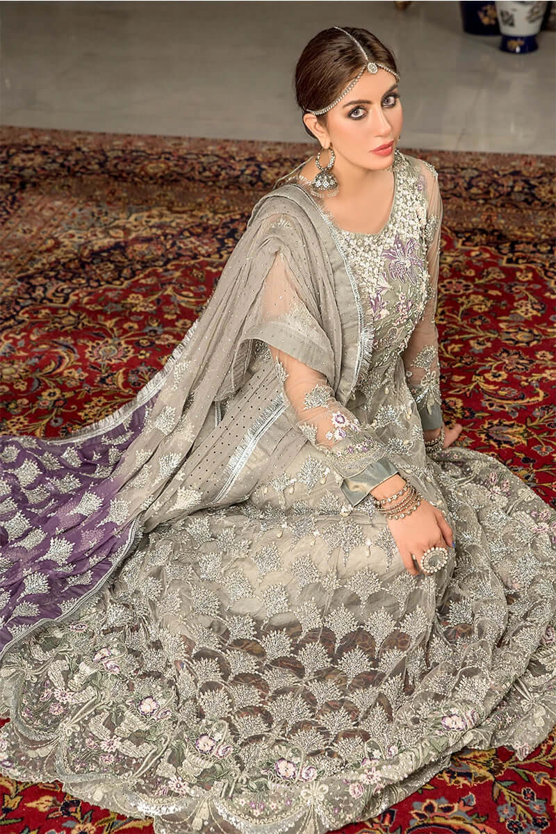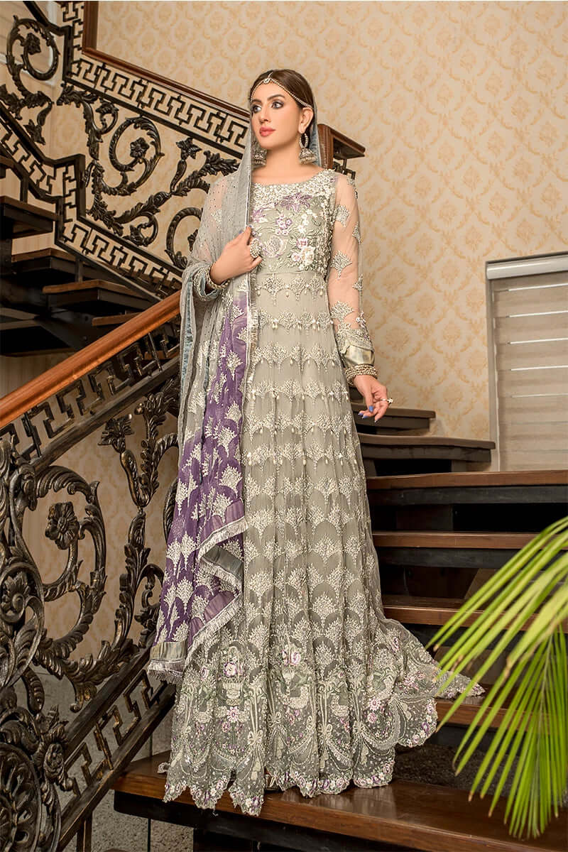 | SHEHAB show cases an exquisitely designed MAXI with excellent zardozi work in a gorguous gray shade done this outfit and become the queen of the affair. |