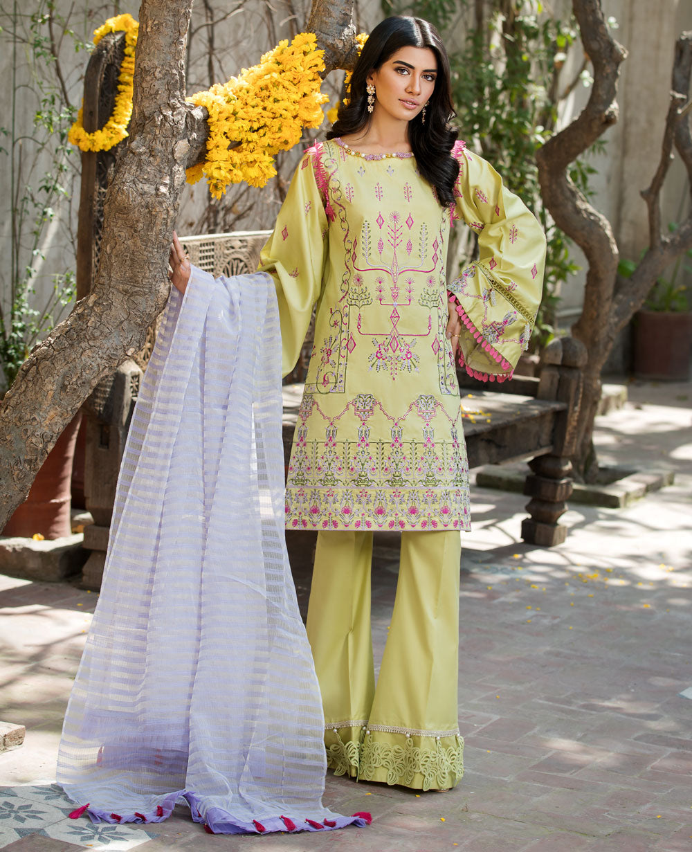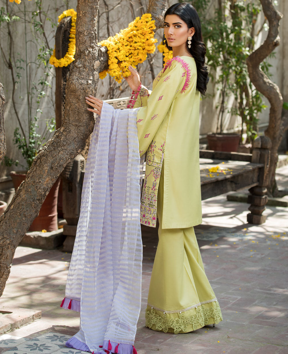 Stitched articles come with trousers tailored to match the unstitched trouser fabric provided. Please note that any appearance of shararas/ghararas in product images is for shoot purposes only unless otherwise specified in product details.