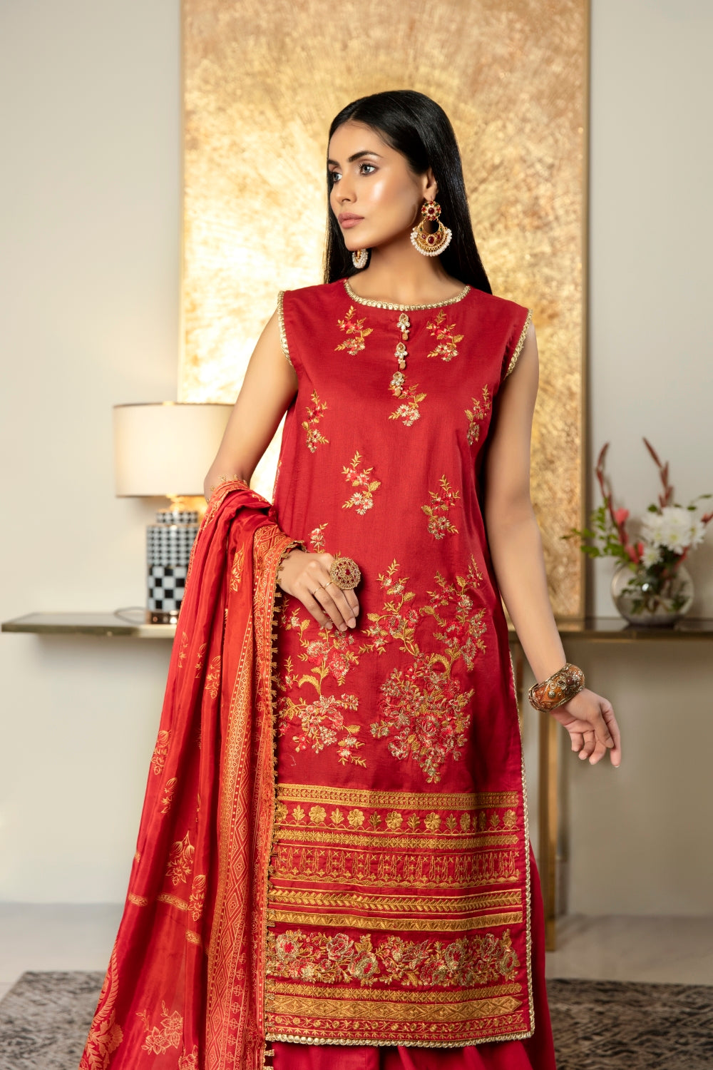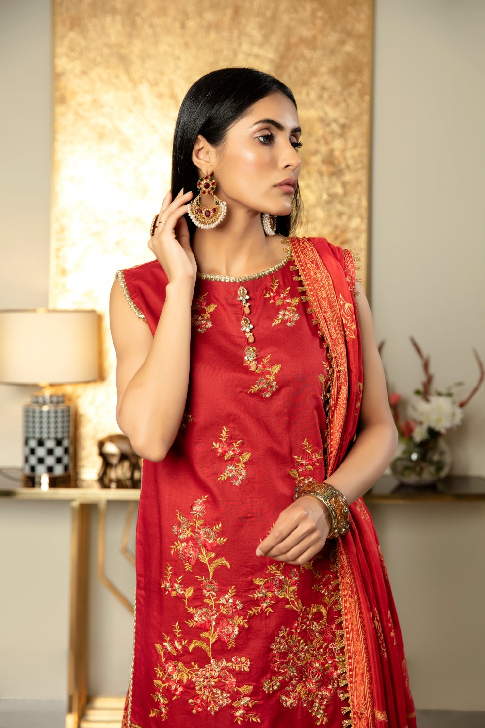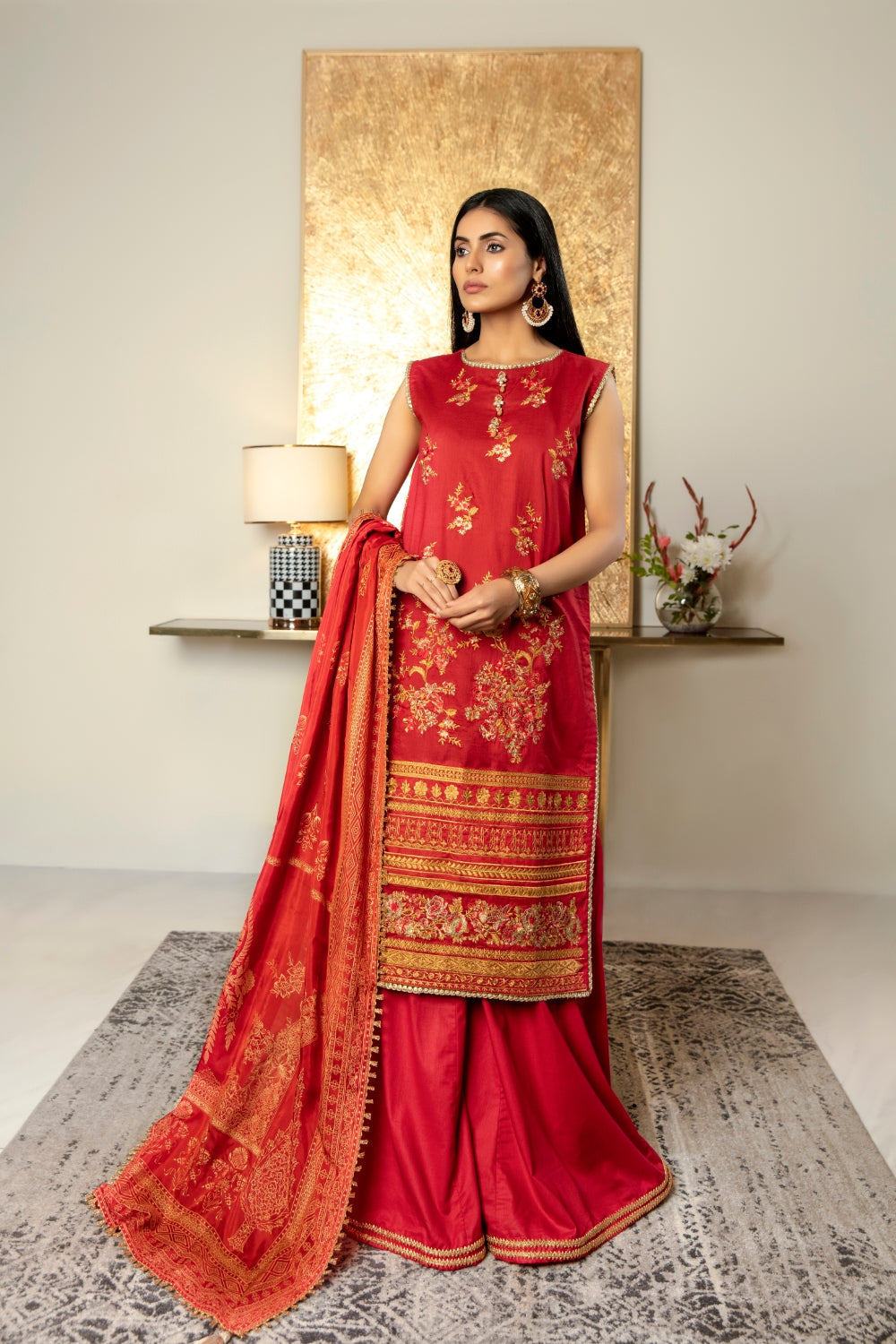 Stitched articles come with trousers tailored to match the unstitched trouser fabric provided. Please note that any appearance of shararas/ghararas in product images is for shoot purposes only unless otherwise specified in product details.