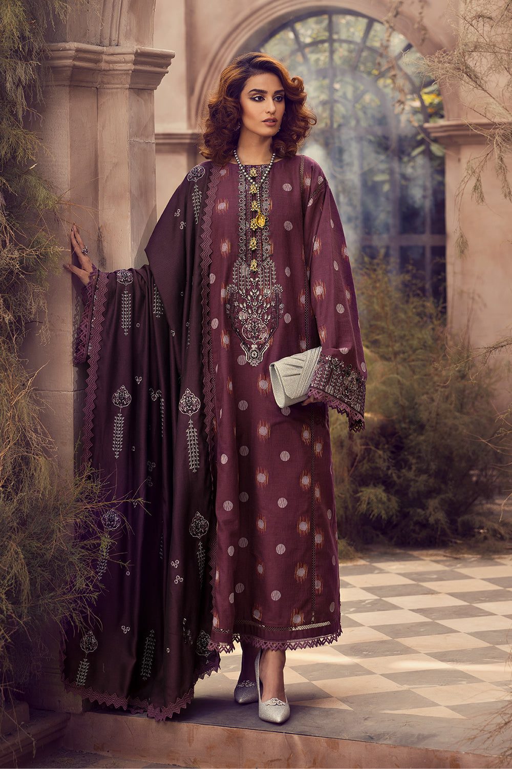 TWILL YARN DYED EMBROIDERED SHAWL 2.5 MTR