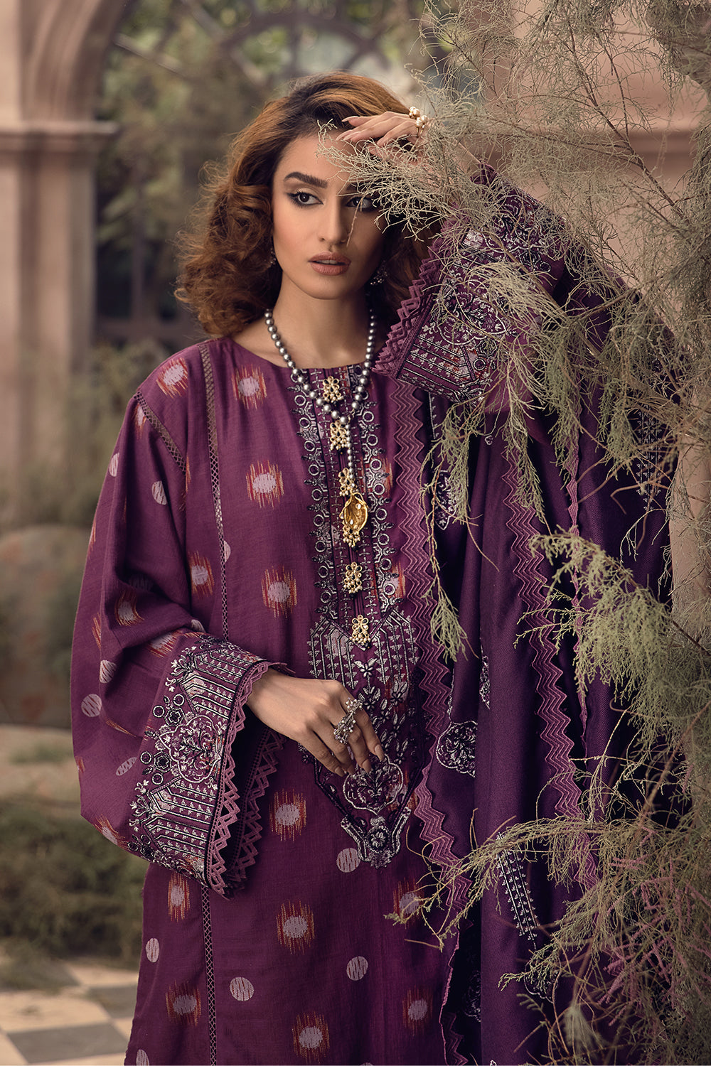 Stitched articles come with trousers tailored to match the unstitched trouser fabric provided. Please note that any appearance of shararas/ghararas in product images is for shoot purposes only unless otherwise specified in product details.