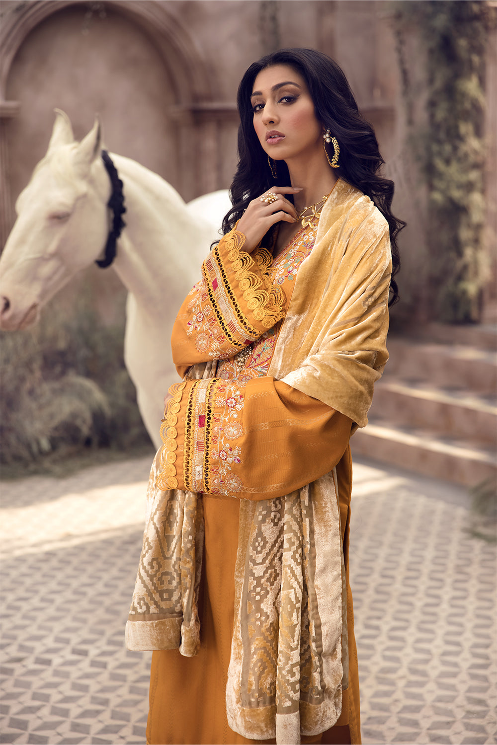 Stitched articles come with trousers tailored to match the unstitched trouser fabric provided. Please note that any appearance of shararas/ghararas in product images is for shoot purposes only unless otherwise specified in product details.